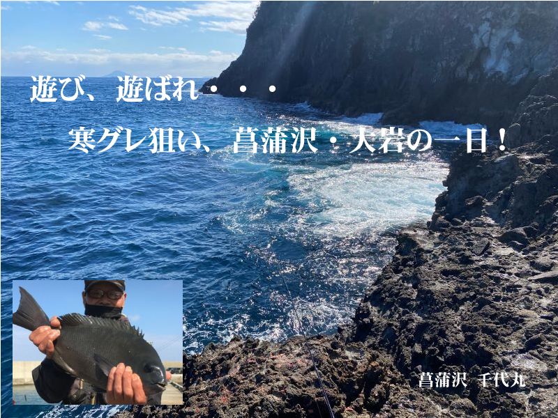 久々の伊豆半島東海岸、菖蒲沢の寒グレ詣で!!! 「風は止んでウネリが高いけど湾内ならできるらしいよ、でも午後から披露宴に行くので帰りは他船が上げてくれるって言ってるけど、ど 「やめましょう、たまには東に行って見る?」 「菖蒲沢にしますか?・・・電話して見ます」と言う事で今回は西伊豆を離れ久しぶりに河津ザクラで有名な河津にある菖蒲沢に向かった。 何年振りだろう?・・・コロナ禍の前だから5〜6年前に西伊豆から逃げて行った記憶があるが、その時の釣果などの記憶がまったくない。