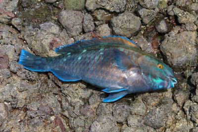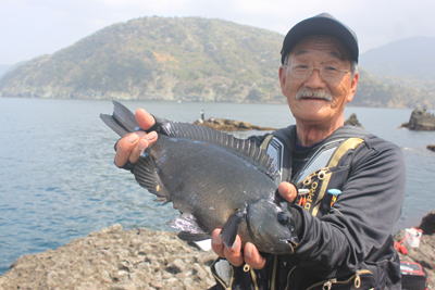 | 30〜35cmの中型は飽きない程度に竿を曲げるのだが・・・ | こいつ(アオブダイ)の超大型が4尾足元をウロウロ・・・ |