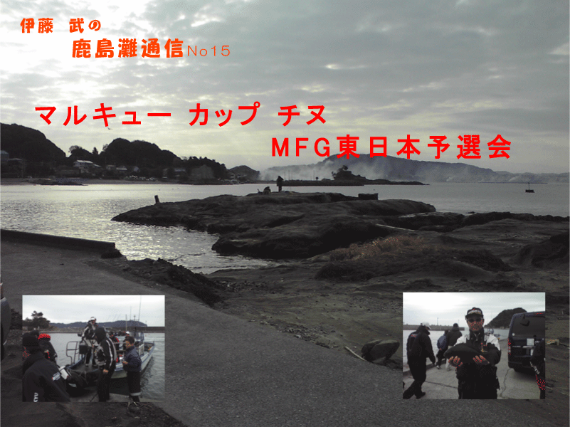 『マルキュー カップ チヌ MFG東日本予選会』 11月29日の日曜日。マルキューカップチヌ、MFG東日本予選会に大会役員として参加しました。 当日は、受付時間前から駐車場がいっぱいになるほど熱心なマルキューファンが詰めかけ、マルキューカップチヌの決勝を目指しました。 AM5:00から受付開始。46名の参加です。各自受付を済ませ、磯割りの抽選を引き期待と緊張の中準備に取りかかります。 AM6:00、大塚事業部長の競技説明の後、鳴釜渡船、共栄丸渡船に分かれて引き当てた磯に渡り競技開始です。私は、千葉の宮内さんと鳴釜渡船の乗り子を担当しました。 また、水温も20度以上あり澄潮でエサ取りが多い中、エサ使いがカギになると船長の言葉通りに厳しいスタートとなりました。 当初は、澄潮で潮が動かずエサ取りのバリやウミタナゴ、木っ端メジナに苦戦したものの、ウキ工房茨城支部長の橋本宏氏がブダイ島にて40センチ弱のクロダイを上げたもよう。他からクロダイの釣果は入って来ません。 その後、良型メジナの釣果情報は入って来ますが、クロダイの釣果情報は入って来ないままPM13時の磯上がりの時間が.......。 すると、マスマの離れで竿を出していた。横浜磯釣り会の鈴木俊嗣さんが40センチオーバーをキープして検量に。続いてウキ工房茨城支部長の橋本宏氏が検量に....!。 そして、次々に良型のメジナも検量に持ち込まれ、大会に花を添えてくれました。 無事事故もなく試合を終え閉会と表彰式です。 先ずは、大塚事業部長の開会宣言からはじまり、MFG東日本会長の柳下光康さん、来賓のマルキュー(株)から小松原次長の挨拶を頂きました。 そして!待ちに待った大会結果発表です。 マルキューカップチヌ全国決勝大会進出者は!。 鈴木俊嗣さん、(横浜磯釣り会)40.1cm 1.09kgで見事優勝!。マルキューカップチヌ全国決勝大会のチケットを手にしました。そして、惜しくも準優勝は『ウキ工房茨城支部長の橋本宏氏』で38.5cm 0.87kgで次点と言う結果となりました。 大会恒例となりました入賞者インタビューでは、澄潮でエサ取りの多い中で良くクロダイを上げましたね?とインタビューされる場面では、優勝の鈴木さん、橋本さんとも練りエサを使ってのヒットと答え、やはりエサ使いが釣果の別れ道となりました。またウキ工房茨城支部長の橋本氏は、今年の茨城支部大会で岡田進さんに伝授された!食わせ練りエサチヌに食わせオキアミSPチヌを練り込んだ!スペシャル練りエサでヒットさせた。お見事です。 またメジナの特別部門も設けられ、上位三名が表彰されました。 参加者全員にマルキュー(株)様より配合エサのチヌ戦がもれなく贈られ、大塚さんの爆笑トークのなか抽選会、ジャンケ大会で大いに盛り上がり、入賞者を囲み集合写真を撮り大会も無事に終了しました。 優勝した、鈴木俊嗣さんは家島諸島で来年5月21日〜23日に行われる、マルキューカップチヌ全国決勝大会に出場おめでとうごさいます。 大会参加者、大会関係者、協力渡船店様お疲れさまでした。 |