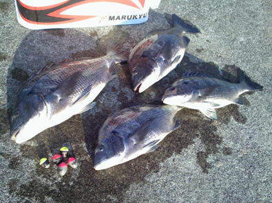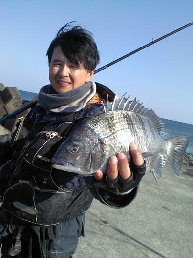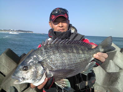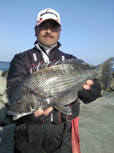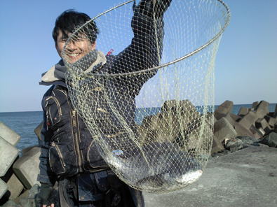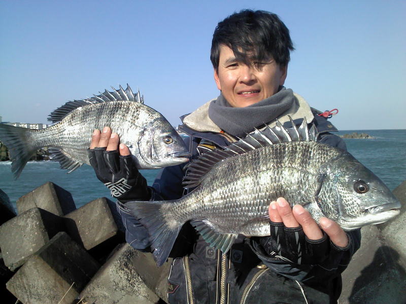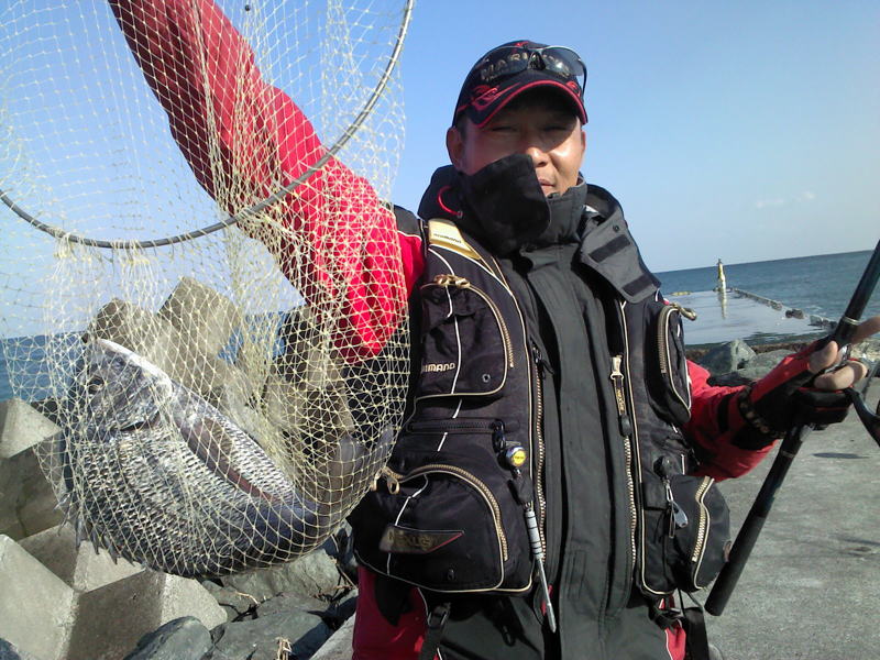 | 『たかが5mm!されど遠い?1.5cm!正司の寒修行.....。』 2月10日と11日の連休を利用して茨城県の県北エリアに寒クロダイを狙い釣行してまいりました。 10日の日曜日は当初予定していた高萩海岸が波が高く断念し北茨城市長浜に急遽場所を変更竿をだしました。 参加メンバーは白井さん、渡部くん、中村さんそして私の4名である。好調を受け日の出から超満員!空いているポイントで竿をかまえるが釣り場の反対側では51cmを頭に数枚でており!夕マズメまで粘りましたが!参加メンバーの中では私の42.5cmと32cmの2枚だけに終りました。 白井さんが仕事のため翌日に渡部くんと佐藤正司くんの3人で再チャレンジする事になりました。明けて11日。北茨城市長浜は超満員と読み?少しの波は覚悟し?空いている高萩海岸にいくことにした。 やはり波は高くこれから下げ潮になるため凄い潮の流れが予想されます。各自撒きエサの用意に取りかります。 3人共にマルキューのチヌパワーV10白チヌとチヌパワーV10白チヌスペシャルを各1袋をオキアミに混ぜ合わせ!付けエサにくわせオキアミスペシャル チヌLとスーパーハードBig−L を各自用意し仕掛け作りにとりかかった。 渡部くんはチヌキラーの5Bを佐藤くんはクリアー凸5Bそして私は千葉のクロダイ釣りの名手黒田さんプロデュースのウキ4B〜1号をローテーションして狙うことにした。 各自ポイントに入り波に注意して開始ししました。それにしても波が高い状況です。先ずは佐藤くん!基礎ブロックの厳しいポイントを攻めています。すると良い感じでウキがアタリを捉え? 『ズッバ!』『基礎ブロック!来た~!。』相手もウキを返してなるものかと必死で抵抗します。粘る?佐藤くん!。『岡田さんの顔がチラチラ!。』『ウリャッ!』『プチチチ~ン!。』基礎ブロックはラインを切り海に帰っていった。 『毎度あり~っ!正司くん。』そして気を取り直し?仕掛けを交換デルタ2にし再チャレンジまたしても!アタリを捉え沈むデルタ2『ズギュ~ン!。』合わせが決まる?。『グググッ!。』今度は大型クロダイだ?!。『ピチ~ン!』今度はハリスから切られた.......。 ややあって!渡部くんにヒット!。此方は取りごろやり取りしごろの40cm。大事に取り込んだ。すると又しても佐藤くんにヒット!。硬調クロダイが満月に綺麗に曲がっている!。ストラクチャーをラインを出し交わすようにアドバイスし沖に出した。大型クロダイの力強い首振りが伝わる。左に走るクロダイを釣り場を移動して一気につめる佐藤くん。ウキが見えクロダイが見えて始めた。 『間違いなく大型だ。』ここからは一進一退で浮いては潜るクロダイ!寒クロダイの強い引きを味わって楽しんでいる?佐藤くん。 『ボカ!。』体高があり50cmクラスのクロダイが横たわり確り取り込んだ。『満面の笑みの佐藤くん。』 やったね!。計測すると48.5cmたっぷり2sはありそうである。 聞くと佐藤くんの自己記録更新とのこと。『おめでとうございます。』私も46.5cmを上げて全員安打し本日2枚目!40cmの上がりクロダイを渡部くんが釣り上げてゴミを広い納竿とした。渡部くん佐藤くん二人共にこの釣り場で自己記録を更新しています。羨ましいかぎりである。俺も自己記録更新して~ッ!。 BACK |
