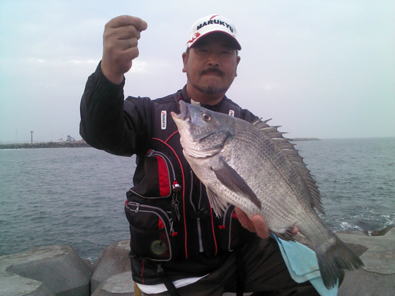 | 『水温も15℃突入!乗っ込み好気配!「茨城県阿字ヶ浦海岸三番堤防」 3月20日の春分の日に墓参りをすませ家から直ぐの阿字ヶ浦海岸三番堤防に行って来ました。夜勤明けの黒澤くんと午後から阿字ヶ浦一番堤防で待ち合わせ様子を見つつ茨城支部の高田くんの釣りを見ていると黒澤くんが13時過ぎに合流しわりかし空いている阿字ヶ浦三番堤防に移動しました。下げ止まりが17:30で長潮、潮位もそこそこあるので夕マズメ狙いには最適です。三番堤防に着くと地元クラブ『湊釣会』の会長梅本さんが46cmの立派なクロダイを釣り上げていました。流石です。 挨拶を済ませ早速に準備に取り掛かります。撒きエサにはマルキューのチヌパワーV 10白チヌ一袋に白チヌスペシャルを1/2袋をオキアミ3キロに混ぜ付けエサにはくわせオキアミスーパーハードチヌとくわせオキアミスペシャルチヌLを用意しラインとハリスはゴーセンのリミテーションCX サスペンド磯2号、フロロワァイターJUDE 12.5号チョイスしウキはチヌキラーM 4Bをセット!勝負チヌ2号に付けエサを確りつけて開始しました。 開始直後は風が強く対流による二枚潮が強く仕掛けも入ら ない状況です。次第に雲もかかり雨が降る場面もしばし耐える釣りとなりました。雨風のためと仕事の都合から私たち以外は納竿し釣り場をあとにしました。そこでウキをフィールドプラスM3Bにチェンジし渋々に浮力を調整し20mくらい沖に対流で出来る潮目を狙うことにしました。撒きエサを多く入れ数投目!?。フィールドプラスを抑えるアタリが.......。惜しくもハリ掛かりさせることができず仕掛けを回収しました。するとオキアミが潰されたようになって戻ってきた?。クロダイは違和感を感じ口から吐き出したようだ。あと少しの時間で下げ止まりです。下げ止まりには絶対クロダイは食うだろうと確信し仕掛けと撒きエサを打ち返します。フィールドプラスにさらに負荷をかけ仕掛けが立つと同時にゆっくりと沈んで行くように調整し投入!確り潮をつかんでゆっくりと沈んで行きます。するとフィールドプラスが明確なアタリを捉え一気に消しこんでいった!。すかさずアワセを入れ『ガッン!』と良型間違いなし?!やり取り開始します。右手前々は沈みテトラなので離岸流に乗せ沖でやり取りし一度沖で浮かせ弱らせながら 手前に寄せて一発でタモ入れ成功!。見ると50cm弱の立派な乗っ込みクロダイです。時間を見るとやはり下げ止まりの17:30としてやったりです。そして私は竿を納め同行の黒澤くんに釣り場を譲りアドバイスしつつ見ていると!?一気に竿先まで来るアタリで40cmクラスを余裕で釣り上げました。この黒澤くんのクロダイを最後に暗くなり始めた釣り場をゴミを拾い後にした。検量の結果私が上げたクロダイが48.2cmで黒澤くんは40.3cmと二人で40cm オーバーを記録しました。 茨城県はこれからが乗っ込みの本番です是非茨城県の乗っ込みクロダイに挑戦してみてはいかがだろうか。 BACK |