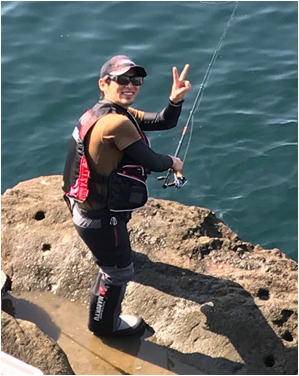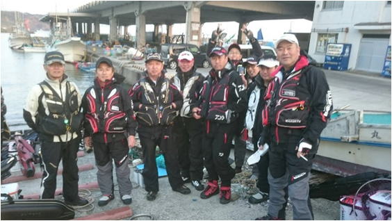 | 気を取り直して攻めていた中林氏も35pの口太をキープし エサ取りが多くなってきたところで私は、付けエサをオキアミから食わせ練エサチヌ 喰い渋りイエローに変更し、高瀬氏と話をしながら誘いを掛け攻めていたところに竿先を引ったくるアタリがありやり取り開始。 チヌ竿を曲げて引きを楽しませてくれたのは44cm程の元気な雄のクロダイで磯に引き上げると、白子を まき散らし磯の上を跳ね回っていた。 その後、キープ魚やサイズ入れ替えをしながら大ボケに上がったメンバーも全員が釣果に恵まれ中林氏も40cmのクロダイを追釣しました。「それには、中林氏も喜んでいました。」 その後、沖上りの時間となり大ボケの釣り座を洗い流し大ボケを後にした。 勝山港に戻るとメンバーもだいぶ戻ってきており検量を待っている状態で今日は、相当な釣果が上がっていることを思わせ、中には遊歩道に入った北村氏が56p位のクロダイを上げ検量に向かっていると噂が入るなど絶好調である。 その後、検量が始まり50pオーバーが持ち込まれ大歓声を受けたメンバーも。 そして今大会は、23pにより近いサイズを競う23p賞も設けられ大型から小型に至るまで気が抜けない検量となっていて非情に楽しめた大会となった。 表彰式や釣果発表については、千葉支部の大会報告をご覧になって下さい。 何時もウキ工房、岡田さんの周りには楽しい!笑顔がいっぱいです。また来年参加したいです。 チームウキ工房茨城支部 伊藤 武 |