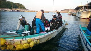 | AM4:30の受付を済ませ5:30の沖渡しの渡船開始時間を待ちます。 くじを引くと私は、16番と言うことですが、渡る磯はまだ未定とのことです。船長、凪次第ということか? 船長〜頼んますよ〜と支度にとりかかりました。 小山支部長の話では、お昼頃にかけ潮位が下がるので午前中の潮位の高い時間が勝負との事で参加メンバーも午前中勝負と気合入りまくりで渡船を待ちます。 岡田さんの緊張を解すトークもあり彼方此方から笑い声も...。(ウキ工房の良いところです。ハイ!) |