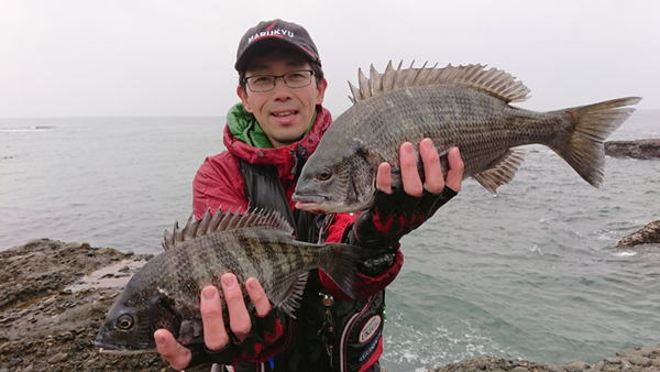 | こないだの釣行からまたまた茨城県大洗磯ナガメに釣行してきました。 今回は賑やかなメンバーでの釣行です。 金龍鉤スペシャルスタッフでもあり、ウキ工房フィールドテスター 伊藤武さんこないだのバラシを1週間落ち込み続けていたウキ工房茨城支部 石川くん。石川先輩のバラシを聞きつけやる気満々のウキ工房茨城支部 田中くんと私を入れ、計4名での釣行になります。 釣行当日の天気予報は午前中は曇で午後からは雨になってしまう予報が出ていました。 予報は的中し、11:00頃ぐらいから雨は降ってきましたが注意しながら釣行を続行いたしました。 07:00ぐらいから釣行していますが特に釣果はなくエサ取りもあまりいない状況でしたが、潮が満潮に近づく中、ファーストヒットに持ち込んだのはルーキーの田中くんです。 足下の沈み根でかけやりとりをしますがなかなか竿が起きず辛い体勢のままどうにか耐えます。 かなり良型のクロダイの引きに私たちもやりとりを見ていてかなりハラハラでした。タモを入れに伊藤さんが行ってくれ、タモ入れ体勢に入りあともう少しのところで悲劇が!!! 鉤上20cmあたりでラインブレイクしてしまい惜しくも良型クロダイをばらしてしまいました。 タモを入れてくれようとした伊藤さんが見た感じ魚体はかなり大きくざっと50cmを越す年なしサイズだったと言う! 田中くんがヒットに持ち込んだポイントはほんとに沈み根が点在していて厳しいポイントです。 ナイスファイトを見せてもらい私と石川くんは気合が入ります。 その後、沈黙が続き同ポイントで田中くんが良型アイナメをヒットさせなんなくランディング成功、40cm前後のいいアイナメです。 私のポイントは特に変化もなく淡々と時間が過ぎていくだけなので変化を起こしたくポイントを休ませ、また釣りを開始した1投目で怪しいウキへの反応に誘いを入れると魚の気配がありタイミングを見計らいアワセを入れるとフッキング成功!!! 間違いなく元気なクロダイの引きです。 慎重に沈み根の位置を確認してクロダイとのやりとりをし無事にランディング完了です。 乗っ込み初期の綺麗なクロダイです。 その後、伊藤さんからのアドバイスのもと田中くんがまたまた美味しいアイナメの40cmをゲットしています。 私も集中してあの手この手と工夫をしていきますが潮が下がり周りの状況が少しずつ変化していくのをヒントに仕掛けにアレンジを加え、「金龍鉤 勝負ちぬ」〜「金龍鉤 チヌ(メジナ)」へと鉤を変え、クリアー凸のサイズもワンランク上げ大きいウキにし、潮の受け具合を変えて変化させる狙いです。 状況次第ですが、今回はよりナチュラルに仕掛けを馴染ませたく「金龍鉤 勝負ちぬ」より線径が細く、自重が軽い「金龍鉤 チヌ(メジナ)」へ変えてから1投目にまたまた怪しいウキへの反応をキャッチ! クリアー凸が押さえ込まれるアタリを表現してくれていたので、根がかりも懸念されましたが魚の気配を感じ丁寧にアワセ入れるとびっくりしたのか一直線で沈み根へと走っていきます。 レバーブレーキにて魚の引きをいなし上がってきたのはまたまた綺麗なクロダイです。 もう、クロダイが「まいった!!!」してくれていたので静かにタモの中に入ってくれました(笑) ちゃんとヒレを上げて、海面に現れたのでそう見えました(笑) 雨は最後まで降り続け、びしょびしょになりながらも石川くんは粘りましたがアタリはなく今回も修行の釣行になってしまいました。 今回の釣果で感じたことは、何かを変化させるとそれに対する魚からのシグナルが出ていたので、茨城県大洗磯には好奇心旺盛な魚が多く入ってきているのではないかな〜と感じました。 やはり鉤のローテーションやウキのフォルム・浮力などの調整は必須で色々試して行くのも面白いですね! 茨城県もクロダイシーズンに入ってきており、面白い釣り場はたくさんあるのでまた釣りに出かけたいと思います。 ※金龍鉤 official website 「http://www.kinryu-hline.co.jp」 ※黒澤一天の…クロダイ修業!?一天勝負!! 「http://blog.goo.ne.jp/03220429」 上記のwebでも、釣行記を紹介させていただいています。 よろしくお願いいたします。 BACK |