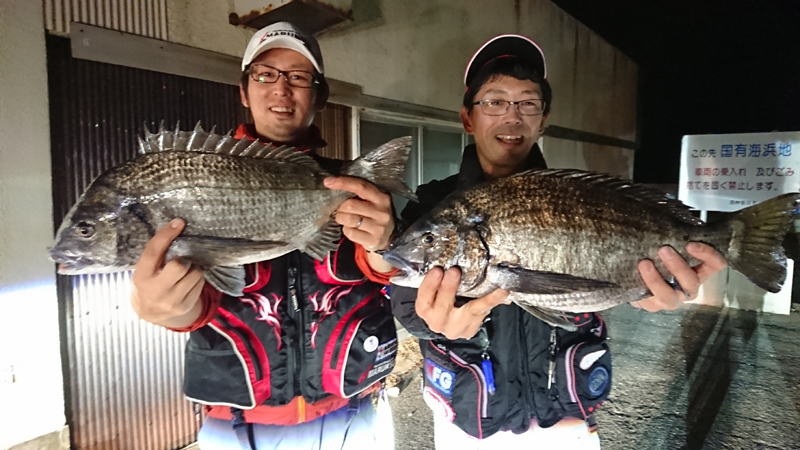 | 黒澤 一天 ●天候 晴れ〜雨/曇り ●潮 中潮 ●水温 13℃〜14℃ ●日時 2019年3月10日(日)・11日(月) ●釣り場 阿字ヶ浦渚釣り〜磯崎一文字堤防 ●釣果 【3月10日】 黒澤 クロダイ48cm1枚 石川 クロダイ49cm1枚 【3月11日】 黒澤 クロダイ45cm〜46cm3枚 佐川 クロダイ46cm〜48cm3枚 ●使用したウキ クリアー凸 イエロー 0〜5B ●コメント 【3月10日(日)】 この日の釣行は師匠であり、ウキ工房フィールドテスター[伊藤 武さん] ・ウキ工房茨城支部[石川くん]との釣行を予定していました。 週の始め、伊藤さんとの打ち合わせでは天候が悪く、また雨だね〜!っと話していましたが週の中頃に天気予報が遅れをみせ釣行予定の3月10日はどうにか日中晴れが続きそうで、最近雨での釣行が多く、濡れずに釣りができることに私は喜びとワクワクが止まりませんでした! そんな私のところに伊藤さんから連絡がきて朗報が入ります! 私の釣友である[佐川さん]が...阿字ヶ浦渚で51cm頭に2枚の釣果、しかもかなりの重量感の魚をばらしてしまいました!...と伊藤さんのところに連絡が入り、それを聞いた私は渚の釣りが頭から離れませんでした(笑) 釣行当日、予報通り天気は晴れになり風もなく最高の渚日より、3人で海を見ながら釣り談義に花を咲かせ釣りの支度を進めていきます。 私はいつも...茨城渚特有の遠浅ポイントではなるべく遠投の効くウキを使用して釣りを組み立てて行きます。 渚で使用するウキは「ウキ工房 クリアー凸」を選択し釣りをスタートさせます。 まずは沖に粒根があるポイントに入り、何投もしないうちに怪しいエサ取りを察知します。 私より先に伊藤さんの仕掛けに反応が出ます、道糸を走らせるアタリが出ますがなかなかヒットに持ち込めません! 石川くんと私は苦戦を強いられ淡々と時が過ぎていきますが...そんな時伊藤さんの姿がないことに気づきます(笑) 周りを見渡すと遥か彼方に姿を発見!その場所は、渚沿いを磯崎漁港方面に歩くと砂浜から伸びている「磯崎一文字堤防」がありそこの根元に伊藤さんの姿を確認! ですが通常ではなかなか釣りをしないかなり浅そうな場所にいます。 そんな時、私のスマートホンに着信が入り、伊藤さんからの電話で「クロダイの気配がある!早くこっちの場所にきな!」とのことでした。 私と石川くんはひたすら砂浜を歩き伊藤さんのもとに向かいます。 その場所はかなり足場の良い釣り場でキワの基礎石にはびっちり青さがついています。 伊藤さんは私と石川くんに釣果出させてくれる為、場所を譲りサポートに回ってくれます。 堤防にて釣りを再開、1投で伊藤さんの言っている気配を察知しましたがなかなかヒットに持ち込めずしばらく粘り、潮が満ち潮に近づく中で石川くんと私のウキが潮に引かれ2m間隔まで近づいて行くと私のウキだけが静かに沈んで行きます(笑) すかさずアワセ入れるとかなりの重量感が竿にのり、元気よく走っていく引きに追従しながらレバーブレーキでラインを送り、強烈な引きをいなして行くと上がってきたのは良型のクロダイで体高のあるカッコイイボディーです! 伊藤さんがサポートしてくださり、ランディングは無事成功、なかなか一筋縄に行かなかったクロダイを釣り上げることができガッツポーズまで決めてしまった私に痛い視線が刺さります(汗) こないだの大洗磯での痛烈なバラシから沈黙を続けている石川くんが私のことを横目でじろりと見つめているのに気づき私はそ?っと竿を置きました(笑) その後、石川くんは伊藤さんにアドバイスをもらい仕掛けを潮なりに投入するとナチュラルに馴染んで行くウキに怪しいアタリが出ます。 綺麗にアワセを決めるとまたまた痛烈な引きで走っていく魚信は間違いなく良型のクロダイで久しぶりのヒットに慎重な石川くんを尻目にクロダイは猛烈なツッコミをみせます(笑) でも、この日の石川くんは少し違いました! なぜなら隣にタモを用意してくれている伊藤さんがやりとりを完全サポートしてくれているからです(笑) こうなってはクロダイが元気な走りをしても徐々にスタミナを奪われ、「まいった!」せざる負えません...。 上がってきた良型クロダイは私のより大きい感じで...もしかしたら年なしサイズかも! 無事、伊藤さんが差し出してくれたタモに収まり、万歳をして一番興奮している石川くんは満面の笑顔です! その後も魚の気配はありましたが日没も過ぎていたので納竿にいたしました。 クロダイを測定した結果... 私のクロダイは48cm 石川くんのクロダイは49cm 惜しくも50cmの壁は越えられませんでしたがこの高釣果も然ること乍ら、クロダイを釣り上げた石川くんの満面の笑顔が何よりの収穫になりました。 【続く 3月11日(月)】 この日は太平洋沿岸を980hPaの低気圧が通過し海は大シケ&強風に見舞われ、午前中は釣りもできず自宅待機を強いられました。 11:00過ぎぐらいから天候が回復し、それをきっかけに釣りに出かけます。 今回はウキ工房のウキを愛用してくださっている[佐川さん]と釣