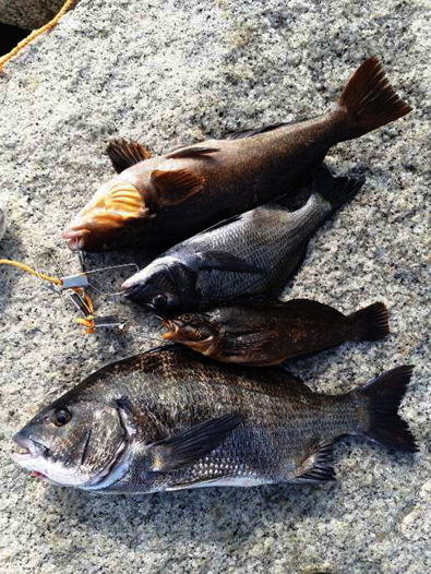 | 最近の天候を一言で表すと...とにかく暑い! 全国各地で最高気温の記録が更新され暑い日が続いていますが、私はクロダイのウキフカセをオールシーズンやっているので真夏でも釣行に出掛けます。 今回の釣行も暑さとエサ取りの多さに下火になりつつある鹿島灘ヘッドランドにウキ工房茨城支部の石川くんと釣行してきました。 釣り場所はアクセスもしやすいくサイズは小さいながらコンスタントに釣果があがっている「濁沢ヘッドランド」です。 仕事の都合もあり暗いうちから釣り場に入り、半夜釣りからの日中日没までのロング釣行! もちろん熱中症対策はバッチリ段取りしての釣行になります。 ウネリは少しありましたがヘッドランドのサイドは使えるので南側の3時方向に釣り座を構えます。 暗いうちは魚の気配がなくエサは残ってきましたが、明るくなるにつれエサ取りは多くなり、かなりの苦戦をしいられます。 暑さも増して厳しくなってきました。 夏のウキフカセはとにかくエサ取りとの戦いになるので細かいガン玉ワークやコマセワークを行い、ストラクチャー周りを丹念に狙っていきます。 ストラクチャー周りで少しだけでしたがエサが残り始めました! 鉤の変更により、ツケエサ自体の自重が変わり、エサ取りはフグがメインだったので鉤を軽くしたことによりツケエサが少しだけスルーされるようになったのだと思います。 その仕掛けでウネリが来るタイミングを見計らいストラクチャー際に入れ込むとウキ工房「アルミエンスイ(G2)」が入り込む潮をつかみ仕掛けをストラクチャー奥へと入れ込んでくれたところで「ゴン!!」っと何かが鉤にヒットしたアタリが穂先に伝わってきました! 穂先を少しずつ引き上げていくと間違いなく魚信が伝わってきたのでもしやと思い優しくストラクチャーから引っ張ってくるとストラクチャーを交わしたあたりで沖に走る猛烈なファイト! ラインを出し強い引きに耐えながらやり取りを行います。 やり取り中もウネリを見ながらいなしていきますがウキ工房「アルミエンスイ」はドングリタイプのウキなのでこうゆうときでも、ウネリの抵抗をもろに受けることなくウネリを切りながらやり取りを行うことができとても使いやすいウキだと私は感じています。 水面に上がってきたのは真っ黒な良型クロダイです! 同行していた石川くんにタモ入れをお願いし、無事に取り込むことができました。 エサ取りのちょっとした変化に気づけたからこその価値ある釣果です。 そこ後もストラクチャー際で良型アイナメをゲットし、最後に石川くんもカイズを追加したあとに納竿と致しました。 暑さもかなりのものでなかなか辛い状況でしたがこのサイズが釣れるのならやる価値はあると思います。 まだまだ夏本番はこれからです。 Back 暑くなる中、熱中症に注意を計りクロダイをウキフカセでまた狙いに行きたいと思います! ●天候(晴れ) 潮(中潮) 水温(20.5℃) 波(1.5m) ●日時 2018.7.25? ●釣り場 濁沢ヘッドランド ●釣り方 ウキフカセ釣り ●釣果 クロダイ30〜46cm2匹 アイナメ30〜44cm2匹 ●使用したウキ アルミエンスイ(L)(イエロー)(0〜5B) ※金龍鉤 official website 「http://www.kinryu-hline.co.jp」 ※黒澤一天の…クロダイ修業!?一天勝負!! 「http://blog.goo.ne.jp/03220429」 上記のwebでも、釣行記を紹介させていただいています。 こちらもよろしくお願いいたします 。 Back |