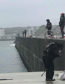 当初は釜島に渡船する予定でしたが 悪天候のために急きょ居島新堤防で竿を出すことになってしまいました。