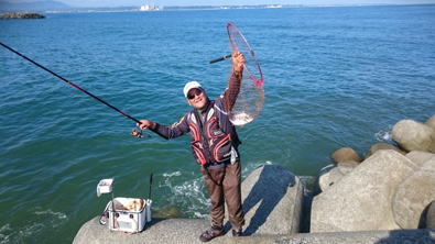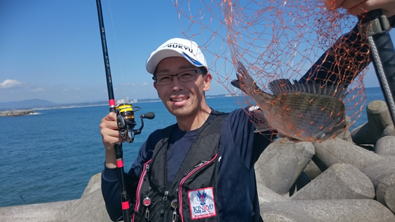 先週一緒に釣りをした宇佐美くんが大津港の堤防で40アップの黒鯛と海津を釣り上げ見事に優勝!