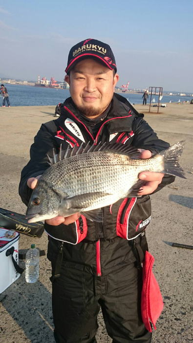 11月5日に茨城支部メンバーで小名浜港の沖堤防にて例会を開催しました! 当日は天候には恵まれましたが 皆様、年末も近いせいもあってか多忙です。 私自身も仕事が忙しく4週間ぶりの休日でしたが参加人数はオブザーバーを含めて15名とチョッピリ寂しい人数でしたが 例会は大変盛り上がりました! 今回の沖堤防への渡船は小國丸さんにお願いして 第一西堤防の 大大西の7番に6名 外側にテトラブロックが入っている大西の13番には私を含めて9名とに分かれて釣りをスタートしました。 13番に渡船する釣り人はほとんどの方が伊勢エビ狙いです。 朝のうちは予想通り フグだらけで付け餌がなかなか通りません やはりテトラ帯はフグが多い! 7番では ほとんど餌取りも無く 8時頃には益子くんや村山くんに黒鯛、メジナ狙いの岡里くんもキーパーサイズを多数との情報が! しか〜し、お昼近くに13番でも私の左隣で竿を出していた上野くんがカイズをゲット。 そして帰港してからの検量は! 釣果のあった方は7名 優勝 益子 佳久 1,665グラム 2位 村山 誠 1,230グラム 3位 岡里 直昭 1,130グラム 4位 入江 茂男 1,075グラム 5位 上野 謙次 1,005グラム 6位 金澤 良信 895 グラム 7位 野口 和博 880 グラム 以上の結果になりました。 優勝した益子くんには賞金と〜 参加して頂いたメンバー皆様、ありがとうございました。 久しぶりにメンバーの方々と楽しく釣りが出来たし、