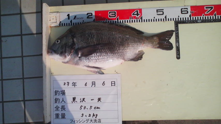 全長 53.5cm 3.2kg 釣り人 黒澤一天 釣り場 茨城県 鉾田市 濁沢。(鹿島灘・ヘッドランド) 平成23年6月6日(月曜日) 中潮 (濁り潮) 水温 18℃ 波高 2m。 天候 晴れ 南西風。 釣り方 ウキフカセ釣り。 魚種 クロダイ。 ヒット時間 13:00 タックル・仕掛け。 竿がまかつ黒斬F-50m。リールDaiwaトーナメントISO-Z競技。 ウキ、トーナメントSP-R5B。 ライン、ゴーセンサスペンドBYスペシャル1.75号。 ハリス、ゴーセンフロロファイターG2、1.25号(2ヒロ)。 針、金龍ばりグレ(メジナ)8号。 小物、半円シモリ(小)ホワイト。 マーキングストッパーオレンジ。 ゴーセンウキ止め糸イエロー。 配合エサ。 マルキューチヌパワーダッシュ1袋。チヌパワーV9遠投1袋。 オキアミ3kg 水量。1.8L くわせオキアミスーパーハード(L) ヒットタナ2ヒロ コメント 中潮の下げ止まりまでエサ取りが反応していましたが、上げ始めてツケエサが残りだし集中して流していると好感度のトーナメントSP-R5Bが繊細なアタリを出してくれヒットさせることができました。 すごくいい引きのクロダイだったのでやり取りをしてタモに入った時は今までにないくらい嬉しかったです。 師匠ありがとうございました。 |