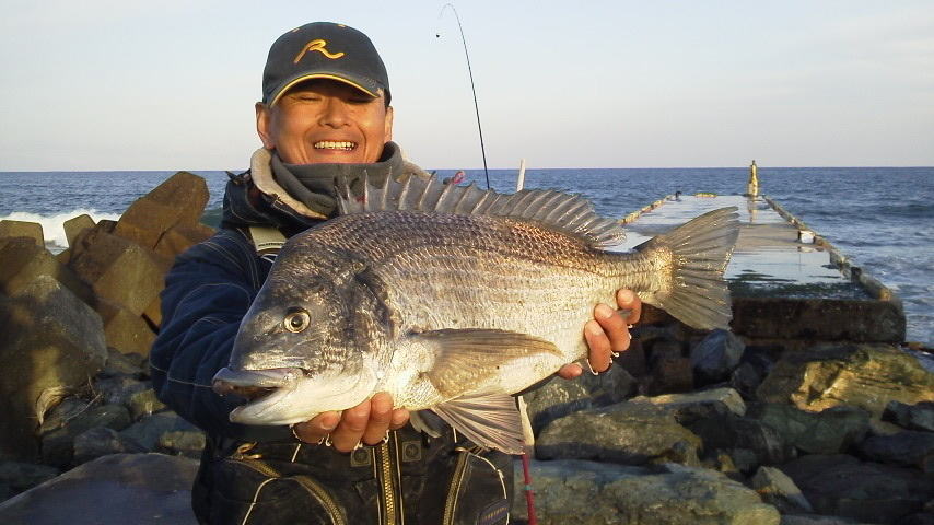 黒鯛 53p 2.25s 釣り人チームウキ工房関東支部 富田幸義 日時 2013年1月11日(金曜日) 場所 松崎町 岩地大根 水温 14.1度 満潮 05:16 干潮 10:33