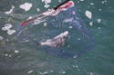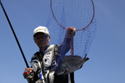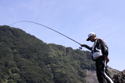 | 残暑お見舞い申し上げます。 パラソルに救われた西伊豆・松崎のクロダイ釣り 8月下旬のこと、能登半島へ出かける準備をしていると、少し頭が痛い?・・・しかし、いつもの偏頭痛だろうと気にもせずフトンにもぐり込む。しかし、朝、目が覚めると手がシビレている。 寝ぞうのせいか?・・・だが、時間が経過すると、そのシビレは酷くなり、カミさんに話すと今流行り?・・・の熱中症じゃーないのと言う。まさか?・・・しかし今夜から能登半島に向かう予定のため、病院に行くと、やはり熱中症との診断!・・・しかし点滴を受けると手足のシビレは消えた。 お医者さんは「2〜3日安静にしていてください」と言う。 「えっ、能登に釣りに行こうと思うんですけど」 「なに言ってるの、死にに行くようなもんだよ、絶対ダメ」と言われ、能登はあきらめて家でおとなしくしていたが、ストレスは溜まるばかり・・・9月になれば少しは涼しくなるだろうと、11日(土)西伊豆にクロダイ狙いで出かけた。本来ならメジナを狙いたいところだが、クロダイ用の新製品のテストが猛暑で延び々になっていたため、このテストを兼ねてのクロダイ釣行だ。 5時30分、渡船のまつざき丸に乗り込み、まずは先週の台風前にクロダイの大釣りがあったと言う「タワラ島」に2名が降りる。この二人はクロダイ狙いと言うが、この日はベタなぎで潮は澄んでいてクロダイには厳しい条件だ。 私はクロダイ狙い、北村さんはメジナ・・・この二人の願いを叶えてくれるのは「白根」だ。しかし、ほんとうの理由は崖下で陽が当たるのが遅い、そしてなによりも足場がいい・・・これが白根を選んだ理由だ。 北村さんは潮通しの良い先端、私は中央付近で開始するが、一投目からネンブツダイの入れ食い!・・・沖目から仕掛けを馴染ませ、ようやくタナまでエサを入れても、今度は小さなフエフキダイやカサゴが食ってきて、クロダイの気配はまったくない。まあ、時期が時期だから、エサ取りや、これらの外道のジャマは想定内だが、メジナ狙いの北村さんには小っ葉メジナも食って来ない。さらに日が昇ると白根と言うだけあって、白い磯、そして崖下のため風は無く、反射熱も半端じゃーない。 「岡田さん、場所変わろうか」 「うん、少しでも風が当たる場所にしようよ」と言うことで「ウジマ」に移動・・・しかし、目の前の「タワラ島」のクロダイ狙いの釣り人2名は磯に座り込み、まったくヤル気がないムードだ。 この「ウジマ」だが、以前はクロダイの一級ポイントだったのだが、近くに堤防が出来てから良くない、潮の流れが変わったせいだろう。 この「ウジマ」も当然エサ取りは多いものと、足元にコマセを撒き、沖目からエサを入れるとエサ(オキアミ)が残ってくる。2投目、3投目、そして仕掛けとコマセを同調させても、やはりエサは残ったまま?・・・ 「北村さん、エサが残るよ」 「オレんとこも残るよ」 どうやらクロダイはいるようだ。しかし、1時間以上経過してもエサがハリに付いたままで頭も盗られない。 この時期にエサ取りが居ないなんて考えられない。という事はクロダイは居るには居るが食い気がないのだ。クロダイも熱中症にやられたか?・・・いや、それ以上にコッチの身がもたない、暑さで心臓がバクバクしてきた。無風で太陽が容赦なく照りつけ、真夏に逆戻りした松崎の磯で再び熱中症になりそうだ。同時に北村さんも限界が来たようで竿を置き、パラソルを広げてくれた。このパラソルだが、娘さんが子供のとき、初めて海に連れて行って買ったもので、物置から出てきたと言う。その娘さんも結婚し、子供が出来てオジイちゃんになった北村さんだが、クーラーボックスにパラソルを取り付ける金具を取り付けてある。このパラソルの小さな日陰にジイさん二人が寄り添って腰を降ろす光景を他人はどう見るのだろう。だが、人の目なんて気にしてる場合か!・・・ 思った以上に快適で熱中症一歩手前の私は息を吹き返した。しかし、パラソルの日陰から出るには勇気がいる。 1時間ほど休憩していると西風が吹き始めた。 この日の干潮まで30分を切ったとき、再び釣りを再開すると、エサを盗られた。そして待望のアタリが・・・充分送り込み、アワせると小気味よい手ごたえ。 「北村さんキタよ」と振り向くと北村さんの竿も曲がっている。そして「なんだアイゴだ」と言い、「待って、写真撮るから」とカメラを構えるがすでに私の35cmほどのクロダイは浮いている。 北村さんも横に入り再開すると、再びウキにアタリが・・・しかし、こんどはクロダイには似ているが30cmほどのヘダイ。そして30cmほどのメジナを取り込んだ後、干潮までの時合いは終わってしまい、再びパラソルの日陰で一休み!・・・上げ潮に期待したのだが、その前に迎えの渡船が来て終了した。 渡船・まつざき丸 0558‐42‐0354 |