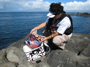 前日の予報で「南風が吹く」ということで、第一に向ったのは、風裏となる金谷「アソ下」。ここは、車を降りて階段を下りるとスグに竿を出せる地磯で、関東では有名なポイントである。そのためか?釣り場にはすでに数人の釣り人がおり、空いている場所での竿出しとなった。