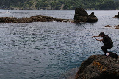 尾長グレが主役!…面白いぞ今年の田子磯 2025年7月 梅雨入りしているはずなのに連日の晴天そして6月と言うのに猛暑日の連続… さらに連日の熱中症そして各地で短時間豪雨やカミナリ警報!・・・ そんな中、約1か月振りの西伊豆・田子磯でこの日は良型の尾長グレがターゲットだ。 港で長野や茨城などの仲間と合流して沖に位置する雌島の「青根」に4名で渡る。ここは足場が良く足腰の弱った我々にはありがたい釣り場なのだがこの時期は夜釣りの釣り人が入るため、この日も夜釣り明けとあってコマセを撒く前からチョーチョ魚やスズメダイ、コマセを撒くと小サバそして大きなイシガキフグなど色鮮やかだ。 この日の仕掛けは「二天一流・武蔵」を使用した2段ウキ仕掛けだ。2段ウキ仕掛けは上スベリの潮など2枚潮対策でコマセとの同調を狙って20年ほど前に流行ったのだが、その頃使用した下ウキ、つまり水中ウキはアタリウキと同等かそれよりも小さいウキを使用していた。 理由は大きいとその水中ウキの抵抗で喰い込まないと思われていたからなのだがアタリウキの何倍もある大きなウキを使用しないと本来の目的の2枚潮対策にならない。その結果、PEラインや沈め探り釣り、また全層釣法など、色々な釣法が生まれ2枚潮、つまりコマセと同調させるための釣法に変わってきたのだが、数年前から尾長グレが多くなり、それまで多用していた全層狙いやウキを沈めて行き、コマセと刺しエサと同調させて喰わせる釣法ではハリを飲まれてチモトから切られることの連続だ。 かと言ってオナガ用の大き目の針やハリスなどを太仕掛けにすると極端にアタリは遠のく・・・そもそもオナガ用の針はアワせたときにハリ先が喉の中を滑って唇に掛かるようにハリ先をネムリ(うち側に曲げる)の針が多い。つまりオナガ用の針はアワせた瞬間にワンテンポ遅れて刺さるように設計されているのだ。 当初、コマセと同調を目的に昨年の秋磯から2段ウキのテストを繰り返していたのだが、下層の潮を多く捉えるために大きなウキ(下ウキ)をセットした仕掛けの方が、飲まれて切られないことが分かった。 メジナがエサを吸い込んだときに感じるウキの初期抵抗で喉の奥まで飲み込めないのだろう。この事が分かって以来、オナガ(らしき?)に飲まれてチモト切れは皆無・・・梅雨グレそして秋磯がさらに楽しみになった。 |