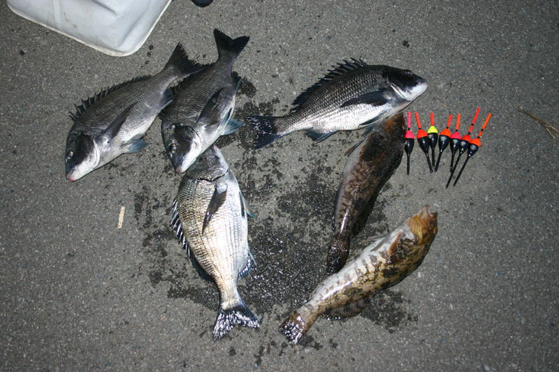 結果的には、私には35〜42pまでのクロダイ4尾、アイナメ40p級2尾が釣れ、ナオチャン(男)は37pのクロダイ1尾、渡部氏は私がクロダイを釣っていたポイントを代わってまでも釣らせようとしたのにクロダイを釣り上げる事が出来なかった。けして未熟で釣り上げられなかったわけではなく、やっぱり日頃の行いだろう、わはははは・・・・・・・。