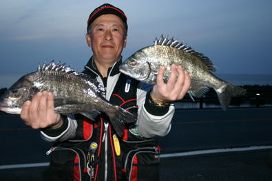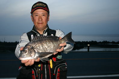 私達はなんとか、その前にクロダイを釣り上げようと行ける日にはなるべく竿を出す様にしていた。そしたら4月24日に携帯に電話があり「クロダイを43pと41pの2尾釣って来た、その周辺では数尾のクロダイが上がった様だった」と釣友の武田さんから電話を頂いた。ヤッター明日は私も休みだし天気も良さそうだ。釣友の渡部勉氏と釣りに行く約束をしていたし、良い情報が入った、これは明日はクロダイを釣り上げる事が出来そうと喜んだ。