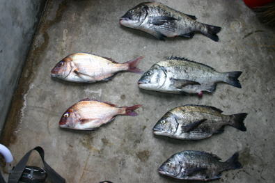 船着き場側はエサ獲りだらけで反対の白山島向きの方はサラシ周辺にはエサ獲りはいるものの、その他は付けエサが結構残る状態だったので、ご覧の通りの釣果で、それなりのドラマ(バラシ)はあった。