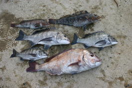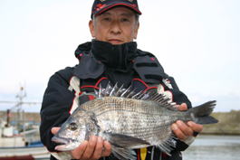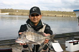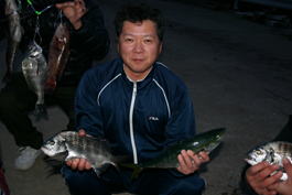 55pのマダイだった、丁度食べ頃サイズである。橋本氏にもう帰るかと冗談を言ったら一人で帰ってくださいと言われた。その後クロダイを一尾釣ったら橋本氏にもアタリがあったが、バラシて、もうすこししてからまたバラシていたが結局43〜45pのクロダイを二尾釣り上げていた。