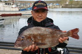 その後もポツポツと釣れ続き午前中で私が7尾、安達氏が4尾、昼頃になり食いが止まったので二人で一緒に昼飯を食べて少し休憩を入れ、今日は良かったねと笑いながらしばし談笑して、また夕方までにはジアイが来るから頑張ろうと言いながら釣りを再開し、納竿する頃には安達氏が9尾、私が12尾、二人で21尾、35〜42pのクロダイを釣る事が出来た。