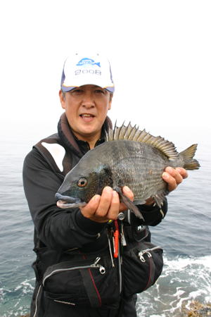 佐藤貴氏は足元に根掛かりと思い竿をあおると根掛かりでは無くクロダイの居食いで、35pほどのクロダイを釣り上げた。その後、そのポイントを攻めて私も35p級を1尾追加して午後から用事があるので私は昼で納竿した。