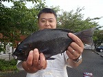 検量場所に到着しみんなの魚を見ると良型のメジナがほとんどの中、津曲さんが良型のイサキ、宮永さんがフエフキダイと正に夜ならではのドリームフィッシュを持ち込んで来ました。参加者のほとんどがこの様に良型を揃え大会は無事に終了しました。