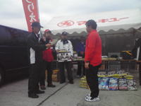『マルキュー カップ チヌ MFG東日本予選会』 11月29日の日曜日。マルキューカップチヌ、MFG東日本予選会に大会役員として参加しました。 当日は、受付時間前から駐車場がいっぱいになるほど熱心なマルキューファンが詰めかけ、マルキューカップチヌの決勝を目指しました。 AM5:00から受付開始。46名の参加です。各自受付を済ませ、磯割りの抽選を引き期待と緊張の中準備に取りかかります。 AM6:00、大塚事業部長の競技説明の後、鳴釜渡船、共栄丸渡船に分かれて引き当てた磯に渡り競技開始です。私は、千葉の宮内さんと鳴釜渡船の乗り子を担当しました。 また、水温も20度以上あり澄潮でエサ取りが多い中、エサ使いがカギになると船長の言葉通りに厳しいスタートとなりました。 当初は、澄潮で潮が動かずエサ取りのバリやウミタナゴ、木っ端メジナに苦戦したものの、ウキ工房茨城支部長の橋本宏氏がブダイ島にて40センチ弱のクロダイを上げたもよう。他からクロダイの釣果は入って来ません。 その後、良型メジナの釣果情報は入って来ますが、クロダイの釣果情報は入って来ないままPM13時の磯上がりの時間が.......。 すると、マスマの離れで竿を出していた。横浜磯釣り会の鈴木俊嗣さんが40センチオーバーをキープして検量に。続いてウキ工房茨城支部長の橋本宏氏が検量に....!。 そして、次々に良型のメジナも検量に持ち込まれ、大会に花を添えてくれました。 無事事故もなく試合を終え閉会と表彰式です。 先ずは、大塚事業部長の開会宣言からはじまり、MFG東日本会長の柳下光康さん、来賓のマルキュー(株)から小松原次長の挨拶を頂きました。 そして!待ちに待った大会結果発表です。 マルキューカップチヌ全国決勝大会進出者は!。 鈴木俊嗣さん、(横浜磯釣り会)40.1cm 1.09kgで見事優勝!。マルキューカップチヌ全国決勝大会のチケットを手にしました。そして、惜しくも準優勝は『ウキ工房茨城支部長の橋本宏氏』で38.5cm 0.87kgで次点と言う結果となりました。 大会恒例となりました入賞者インタビューでは、澄潮でエサ取りの多い中で良くクロダイを上げましたね?とインタビューされる場面では、優勝の鈴木さん、橋本さんとも練りエサを使ってのヒットと答え、やはりエサ使いが釣果の別れ道となりました。またウキ工房茨城支部長の橋本氏は、今年の茨城支部大会で岡田進さんに伝授された!食わせ練りエサチヌに食わせオキアミSPチヌを練り込んだ!スペシャル練りエサでヒットさせた。お見事です。 またメジナの特別部門も設けられ、上位三名が表彰されました。 参加者全員にマルキュー(株)様より配合エサのチヌ戦がもれなく贈られ、大塚さんの爆笑トークのなか抽選会、ジャンケ大会で大いに盛り上がり、入賞者を囲み集合写真を撮り大会も無事に終了しました。 優勝した、鈴木俊嗣さんは家島諸島で来年5月21日〜23日に行われる、マルキューカップチヌ全国決勝大会に出場おめでとうごさいます。 大会参加者、大会関係者、協力渡船店様お疲れさまでした。 |
