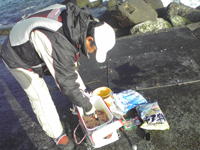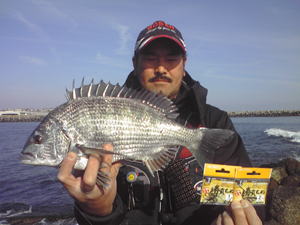 大洗海岸 祝町防波堤再チャレンジ。 23日の45センチの同型3連発の釣果を知り!?居てもたっても居られなくなった。『中村さん!。』聞くと、11月29日のマルキューMFGカップ千葉県富浦大会の後は、仕事が忙しく休みも無い状態でストレスたまりまくりの毎日だったのです。 『そんな状態では、ストレスもたまるよね〜?。』 『疲れてる時は、潮騒を聴いて?潮風にあたったら?。』 『そ〜だよな〜?。』『じゃ〜ッ!。明日!フィッシング大洗店に8:00と言うことで?。』 『サンキューソーマッチ。』 『中村さん!ゲット』です。 フィッシング大洗店で27日の8:00に待ち合わせ、大洗海岸の祝町防波堤へ・・・そこへ新規メンバーの黒澤君が合流。『宝山海』の佐藤君、栃木県から通っている高田君と次々に集まって来ます。釣り場に到着し準備に取りかかります。中村さんは、オキアミ3キロにマルキューのチヌ戦とチヌパワーV10白チヌを混ぜ合わせ、付けエサにマルキューの食わせオキアミスペシャルチヌLを用意した。ウキは『岡田ドングリPRO-R オレンジ5B』をセット。私は、オキアミ3キロをベースにチヌパワーダッシュ一袋にムギパワー白一袋を混ぜ合わせ、付けエサは中村さんと同じです。ウキはクリアーオレンジの3B〜5Bをローテーションします。最初は3Bでスタートです。 開始から約1時間は、後輩の指導をし『中村さん、我々も始めますか?』と第1投。中村さんが渋いアタリを取り、仕掛けを回収するとオキアミの頭が取られています。『伊藤さん〜?次喰っちゃうかも?。』仕事の疲れとストレスをこめた次投!。シモリ際を流れ、じわりじわり引き込まれていきます。『バッヒュ〜!。』やり取り開始です。クロダイは、竿を絞るだけで浮いてきません。『デカイかも?。』『マジ!デカイよ?。』起伏の激しい所からは、難とか出しましたが依然!一進一退です。クロダイが一瞬頭を向けた?勝負です。PROが確認できる所まで浮いてきた!。『が・ん・ば.....』『あ″.....。』『.......″。』私は一部始終見てましたがあれはデカイかもです。 さて気を取り直して再開です。 自分のポイントに戻り、沖のシモリを狙い振り込みます。マキエと同調していきます。シモリ際で『アタリ!。』ハエネをかわし取り込んだのは44.5センチのクロダイです。『中村さん?ごめんなさい?』『いいっす!。』『直ぐ釣るっす!。』するとと隣で黒澤君の竿が曲がり良型のクロソイがヒット。続いて中村さんに本命のクロダイヒット!。先程超大型を逃がしているだけに慎重に取り込んだのは42センチのクロダイです。『やっと来た甲斐があったよ!。』と中村さん。でも直ぐに釣り返す所はさすがです。これを期に午後から前線の通過で風、波共に強くなり、下げ始めに中村さんが35センチのアイナメを追加。クロダイの気配はプンプン?。釣れると危険は隣り合わせです。後ろ髪を引かれる思いで釣り場を後にした。最後に極翔クロダイのバッドポテンシャルを考えると、正に夢の一枚だったに違いない?。中村さん!仕事は29日迄だとか?これで少しは、ストレス解消?仕事の疲れは癒せましたか?。 30日は、ウキ工房茨城支部の納会ですよ!。 一年ご苦労様でした。 |