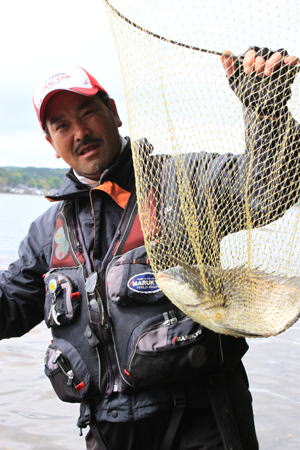 in 能登』 参戦記。 5月29日〜30日の二日間、ウキ工房の最大のイベントの一つ『チームウキ工房 ファイナルカップ in 能登』に参戦して参りました。第一回の佐渡に始まり、庄内に次ぐ第三回大会です。三年に一度開催される!いわゆるウキ工房のワールドカップ?なのであります。(日本代表の監督も岡チャンでしたね(笑))....。一路茨城を出発、栃木県、群馬県、長野県、新潟県、そして富山県と600キロ以上....!。五県を走破やって参りました!『能登半島』・・・ 待ち合わせ場所に到着したのがAM4時を回ったあたりだろうか?....。薄暗い中にも懐かしい顔ぶれや新しい顔ぶれも・・・皆さん長距離運転で疲れていないのか心配になっちゃいますね。でも気合いが入っているのは確か。各支部が集まり、いよいよ!岡田さんの挨拶でファイナルカップのスタート?・・・のはずだったのですが。ここで、岡田さんが能登半島に来たもう一つの理由を暴露...。『倉ちゃんこと長野支部で副本部長の倉石さんに...「何でこの間、テレサ・テンの歌を聴いて号泣していたの?」この真意を聞きたかったとのこと。でも本人(倉ちゃん)不在で不発....。朝の挨拶もすみ、号泣の謎は夜の懇親会へ持ち越しとなった。岡田さんの挨拶で気合いを注入〜! 個人戦、団体戦に別れて各釣り場に向かった。私達、茨城支部は支部長の橋本くん、真弓さん、私で個人戦に出場。団体戦には、黒須さん、清水くん、黒澤くんが向かい、私達は穴水の野々木鼻へ移動。前に『645』の何やら不審ナンバーの車が?・・・佐渡の近藤さんである。渡船場に付き、近藤さんに貴重なアドバイスを頂いた。『ここは、クルブシからヒザまで潮が上がるのでブーツが鉄則だよ?』と言い、参加者全員がブーツを履くなか、近藤さんだけシューズ....?。筋金入りである。そして磯割りの抽選。私は20番で19番は岡田さんである。橋本くん、真弓さんは22番、23番で野々木鼻の先端に渡る事になり、磯に無事上がり、岡田さんから野々木鼻のポイントや攻め方を伝授して頂き各自準備完了、AM6時に一斉に競技開始。私はワンドを挟み岡田さんの対岸に釣り座を取った。しばらくして待望のアタリ...。小気味良い引きで能登第1号は手のひらサイズのカイズだ。岡田さんもそのサイズに手を妬いている模様。すると岡田さんに良型がついにヒット!・・・5m程張り出したハエ根をかわし取り込み体勢のはずだったが『ありゃ〜!伊藤く〜んやっちゃったよ...。』と一言。でも潮が動かない中、良型を掛けるとは恐れ入りました。その後やはりカイズクラスは上がるもののサイズアップせず時間だけが過ぎて言った。野々木鼻の湾奥の奥からは、朝から近藤さんの声が響き渡り、あい変わらず近藤さんは全快バリバリ・・・! 午後1時をまわり風が強く吹き出した。すると潮が動きだし時合いが到来。岡田さんが足下を60cm近い巨チヌが泳いでいるのを目撃....。『伊藤くんの方にデカイの泳いで行ったぞ』と言われ、『ヨシ!巨チヌ来いよ〜!』と念じていたら行きなりチヌキラーが海中に飛んでいった!・・デカイ!・・・しかし、巨チヌではなくメーター級のピンクのカンダイで1.25号のハリスはもとよりチヌキラーも持って行かれてしまった。『まずい?』と思い岡田さんを見ると『またまた!やっちゃったよ2連発だよ...。』岡田さんのまさかのバラシ2連発でほっと肩を撫で下ろす。橋本くん、真弓さんもヒットパターンを掴み沖目を攻めている。ここで岡田さんが「伊藤くんもこっちに来なよ〜」と天の声。すかさず隣に入れていただいた。そこで、岡田さんの撒きエサを見ると淡いピンクの配合を使っているではないか!。 『岡田さん、その配合は?』と聞いてみた。『クロダイの配合が無くて...グレの持ってきたんだよ。クロダイもバンバン釣れるんだね....?』と言っていた。グレ用の配合が岡田さんの手により『Gスペシャル・チヌ能登バージョン』に変化していたのだった。初日の競技時間が残りわずかとなった14時頃!・・・『いい感じだ。食えばデカイぞ...。』誘いを丹念に入れる岡田さん。そして『ほれ..!ほれ..!ほれ..!これでもか誘いをと掛ける岡田さん・・・。それをじっと見る私!・・・。 『ほ〜ら!食ったよ!・・・そっち行っちゃ駄目ぇ〜....。』バッドから曲がる竿!。 『デカイから!時間をかけるよ!』歳で肩が上がらないはずだがリハビリ釣行を重ねているためかあるいは執念か、竿の取り回しも速く余裕のやり取りで大チヌの動きを操っている!・・・とんでもない親父である。イナシも入り完全に岡田さんに操られているクロダイも可哀想だ。そして確認出きるところまで浮いてきた。 『デッ?デッ!デカ〜ッ!。』 『伊藤く〜ん、写真撮って!。』余裕である。数回の引き込みはあったが難なく取り込み完了。撮影を済ませ計測すると55cm近いクロダイで『やっと3発目に取れたよ。全部捕ったら皆に悪いからな.....。』ごもっともです。(笑) これで、岡田さんは終了。バッカンを洗い、洗い汁を私の足元