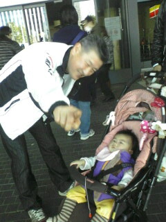 @写真。秋野さんが斉藤支部長と久美ちゃんの〇〇ちゃんに私を指差し『あんなおじちゃんに騙されるなよ』と指差します。すると?『番長〜!きらい?...。バァ〜ブ〜ッ!』子供は素直である?。そして入場。各メーカーのブースには最新のアイテムが勢揃い!。