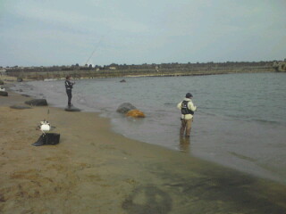 | 『茨城県 北茨城市 九ノ崎海岸の渚釣り』 マルキュー(株)より5月10日に新発売された!『Bチヌ遠投』の試釣を兼ねて、5月13日(日曜日)にウキ工房福島支部の渡部洋支部長と副支部長の佐藤正司くん(せいじ!じゃないよ?まさしだよ!)と私の3人で北茨城市の九ノ崎海岸に渚釣りに出掛けて来ました。渡部くん佐藤くん共に渚釣りは、初挑戦で凄く興味津々!。 Bチヌ遠投の開発と共にウキ工房から新発売された『渚チヌ』も同時に試してみたいとやる気満々です。朝マックをすませ!(柄の悪いオヤジが朝からコーヒー一杯で営業妨害)九ノ崎海岸に到着し素早く渚釣りの準備をすませ釣り場に移動しました。 釣り場の浜に着くと仕事で寝ていない佐藤くんは、赤ら顔で徐々にテンションが上がって来ています?...。渡部くんは、マジで釣れるのか?半信半疑の様子です。そしてBチヌ遠投の説明と私が使ってみての感じや岡田さんから開発当時に私も受けたアドバイス、それに合った仕掛けタックルの説明を伝え撒きエサ作りに取りかかった...。渡部くんはBチヌ遠投一袋にムギパワー白1/2袋をブレンドしオキアミ3キロと海水2で仕上げ!佐藤くんはBチヌ遠投一袋に良く解かしたアミエビ4キロとオキアミ3キロを混ぜ合わせ!海水無しで仕上げ、二人共に手捏ねで満遍なく混ぜ上げました。(佐藤くんの手臭いョ!...。やる気のあられだそうです...By渡部、佐藤)。同時に水温を計ると15.5℃有り茨城周辺も水温が上がって来ており期待が高まります。付けエサはマルキューの食わせオキアミ スーパーハードBIG L と食わせオキアミスペシャル チヌ Lをチョイスし、渡部くんは、スナイパーのMサイズに佐藤くんは渚チヌの大をセットし今や渚釣りの儀式になりつつある...?ポイントを作る為のお団子爆弾!?洋玉!武玉!正司玉を各自投入!渚釣りを開始した...。釣り開始は、無風に近くお昼過ぎには正面の南風に変わり釣りづらくなってきました。そこで各自ウキをチェンジしデルタ1やチヌキラーに変更し撒きエサのBチヌ遠投を調整し直し午後の上げ潮の時合いに備えた。すると立ち藻の生えたポイントを攻めていた佐藤くんが!『伊藤〜さん!』と呼ぶので振り返ると!...。砂浜から岩の上に乗り渚のシンドバッドを踊っているって言うか?やり取りの真っ最中です。 『渚釣りだから?その岩から下りろ』と!言うと『やだ〜ッ!』と大分気にいったらしく下りないので、私と渡部くんでその岩を『正司岩』と命名してやりました。すると又しても正司岩に乗り『伊藤〜さん!』とテンション上がりまくりの佐藤くん!。同サイズを追釣し寝不足の頭は最高潮!意味の解らない言葉を連発し?『渚ちゃん!...。Bチクスゲ〜ッ!』と完全に頭はBチク遠投に洗脳された様子です。(Bチヌです!By花岡マルキューの方)...。すると浅場を根気強く攻めていた渡部くんにアタリがあり!。砂浜から正司岩に上がってやり取りし41センチを釣り上げました!。すると『浅場で掛けるので良く走る!』と興奮した様子です。またBチヌ遠投を入れながら観察すると、クロダイのハネが出たり!波内際にクロダイが入って来たり撒きエサにボイルしたりと凄いことになってきました!。圧巻は、渡部くんの入れた仕掛けをクロダイが尾びれでウキごと弾き飛ばしたことです!。また見知らぬ大型の魚が波打ち際まで入って来たりと3人で目撃し大興奮でした。 そして夕マズメに入り佐藤くん!渡部くん共に大型のクロダイが掛かりましたが?ハリ外れやハリス切れで取り逃がしてしまいました。また、満潮に入ると正司岩は水没し寂し気な佐藤くん...。仕掛けがやり取り中に立ち藻にかかるようになると正司岩に上がってやり取りしないと立ち藻を交わしづらい事が判明!。正司岩は(何の代わりばえのない砂浜から出た小さなオンコ色の岩)、九ノ崎海岸の一級ポイントたったのだ...。恐るべし正司岩。そして、周辺が暗くなり始めた為道具を片付け浜を掃除して二人の渚釣りデビューは幕を下ろしたのであります。当日は私が3枚に佐藤くんが2枚、渡部くんが1枚でクロダイを8掛け!6枚キープし2バラシと言う釣果でしたが、Bチヌ遠投と渚チヌの凄さと新しい釣りの渚釣りを改めて認識し有意義な釣行となりました。茨城県は渚が多くクロダイの魚影が濃いのでまだまだ未知数です。是非ともクロダイの渚釣りに挑戦してはいかがだろうか。 BACK |
