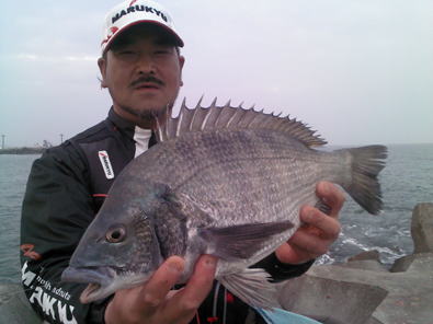 | 『水温も15℃突入!乗っ込み好気配!「茨城県阿字ヶ浦海岸三番堤防」 3月20日の春分の日に墓参りをすませ家から直ぐの阿字ヶ浦海岸三番堤防に行って来ました。夜勤明けの黒澤くんと午後から阿字ヶ浦一番堤防で待ち合わせ様子を見つつ茨城支部の高田くんの釣りを見ていると黒澤くんが13時過ぎに合流しわりかし空いている阿字ヶ浦三番堤防に移動しました。下げ止まりが17:30で長潮、潮位もそこそこあるので夕マズメ狙いには最適です。三番堤防に着くと地元クラブ『湊釣会』の会長梅本さんが46cmの立派なクロダイを釣り上げていました。流石です。 挨拶を済ませ早速に準備に取り掛かります。撒きエサにはマルキューのチヌパワーV 10白チヌ一袋に白チヌスペシャルを1/2袋をオキアミ3キロに混ぜ付けエサにはくわせオキアミスーパーハードチヌとくわせオキアミスペシャルチヌLを用意しラインとハリスはゴーセンのリミテーションCX サスペンド磯2号、フロロワァイターJUDE 12.5号チョイスしウキはチヌキラーM 4Bをセット!勝負チヌ2号に付けエサを確りつけて開始しました。 開始直後は風が強く対流による二枚潮が強く仕掛けも入ら ない状況です。次第に雲もかかり雨が降る場面もしばし耐える釣りとなりました。雨風のためと仕事の都合から私たち以外は納竿し釣り場をあとにしました。そこでウキをフィールドプラスM3Bにチェンジし渋々に浮力を調整し20mくらい沖に対流で出来る潮目を狙うことにしました。撒きエサを多く入れ数投目!?。フィールドプラスを抑えるアタリが.......。惜しくもハリ掛かりさせることができず仕掛けを回収しました。するとオキアミが潰されたようになって戻ってきた?。クロダイは違和感を感じ口から吐き出したようだ。あと少しの時間で下げ止まりです。下げ止まりには絶対クロダイは食うだろうと確信し仕掛けと撒きエサを打ち返します。フィールドプラスにさらに負荷をかけ仕掛けが立つと同時にゆっくりと沈んで行くように調整し投入!確り潮をつかんでゆっくりと沈んで行きます。するとフィールドプラスが明確なアタリを捉え一気に消しこんでいった!。すかさずアワセを入れ『ガッン!』と良型間違いなし?!やり取り開始します。右手前々は沈みテトラなので離岸流に乗せ沖でやり取りし一度沖で浮かせ弱らせながら 手前に寄せて一発でタモ入れ成功!。見ると50cm弱の立派な乗っ込みクロダイです。時間を見るとやはり下げ止まりの17:30としてやったりです。そして私は竿を納め同行の黒澤くんに釣り場を譲りアドバイスしつつ見ていると!?一気に竿先まで来るアタリで40cmクラスを余裕で釣り上げました。この黒澤くんのクロダイを最後に暗くなり始めた釣り場をゴミを拾い後にした。検量の結果私が上げたクロダイが48.2cmで黒澤くんは40.3cmと二人で40cm オーバーを記録しました。 茨城県はこれからが乗っ込みの本番です是非茨城県の乗っ込みクロダイに挑戦してみてはいかがだろうか。 BACK |