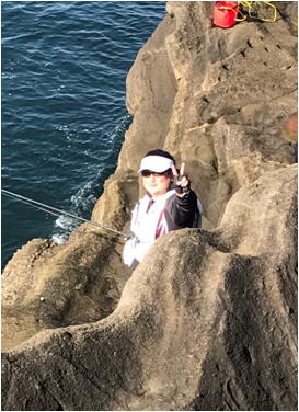 | 気を取り直して攻めていた中林氏も35pの口太をキープし エサ取りが多くなってきたところで私は、付けエサをオキアミから食わせ練エサチヌ 喰い渋りイエローに変更し、高瀬氏と話をしながら誘いを掛け攻めていたところに竿先を引ったくるアタリがありやり取り開始。 チヌ竿を曲げて引きを楽しませてくれたのは44cm程の元気な雄のクロダイで磯に引き上げると、白子を まき散らし磯の上を跳ね回っていた。 その後、キープ魚やサイズ入れ替えをしながら大ボケに上がったメンバーも全員が釣果に恵まれ中林氏も40cmのクロダイを追釣しました。「それには、中林氏も喜んでいました。」 その後、沖上りの時間となり大ボケの釣り座を洗い流し大ボケを後にした。 勝山港に戻るとメンバーもだいぶ戻ってきており検量を待っている状態で今日は、相当な釣果が上がっていることを思わせ、中には遊歩道に入った北村氏が56p位のクロダイを上げ検量に向かっていると噂が入るなど絶好調である。 その後、検量が始まり50pオーバーが持ち込まれ大歓声を受けたメンバーも。 そして今大会は、23pにより近いサイズを競う23p賞も設けられ大型から小型に至るまで気が抜けない検量となっていて非情に楽しめた大会となった。 表彰式や釣果発表については、千葉支部の大会報告をご覧になって下さい。 何時もウキ工房、岡田さんの周りには楽しい!笑顔がいっぱいです。また来年参加したいです。 チームウキ工房茨城支部 伊藤 武 |