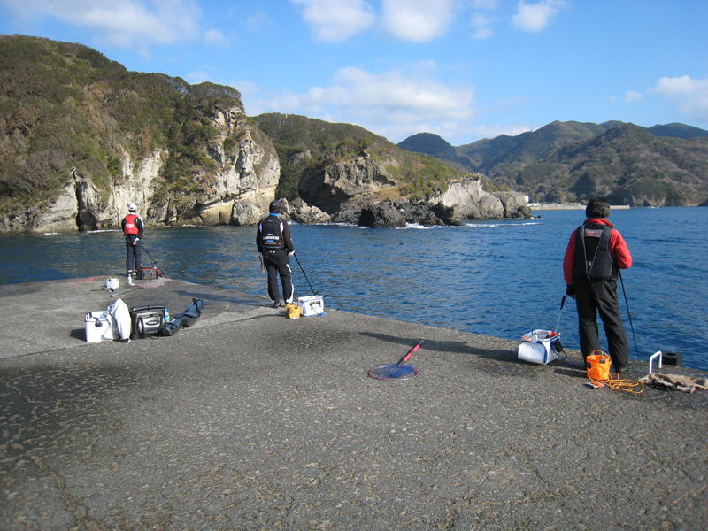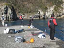 関東支部ファイナルカップ予選会前日。松崎にて初日の釣りを終えた宿で、岡田さんの携帯電話に本日○○回目となる、K村さんから催促の電話。今回、諸事情により土曜日からの釣行に参加出来なかったせいか、明日の大会会場が気になってしょうがないらしい・・・ 予想以上にうねりが残ってしまっているらしく、出船出来そうな渡船屋さんは予約で一杯になってしまっている状態。今回ゲストとして参加して頂いた、(ウキ工房ホームページにて釣行記を書かれている)高橋浩司さんにも尽力して頂き、なんとか妻良 五平衛丸の船長に無理を言って予約をお願いする。 やっと、K村さんを始めとして、各参加者へ連絡を入れ重圧(主にK村さんからの着信)から開放。 予選会当日。やはり、うねりが落ちない為、予選会参加者8名は全員離岸堤へ渡船。4名ずつ伊浜寄り入間寄りの両先端に分かれ、2時間での場所交代、喰い渋りが予想された為、釣果対象となるメジナの規定サイズを(15センチ以上2匹の合計長寸)下げるなど急遽ルール変更を行う。 離岸堤への渡船終了後、早速2組に分かれ予選会開始。珍しく場所選びのジャンケンに勝った私(矢島)は、入間よりの先端の釣り場を選択。沖向きにテトラが入っていることもあり、両先端ともテトラ周りの実績が非常に高い。逆に、ここで釣れないと他は砂地がメインとなる為、予選通過は非常に厳しくなる。プレッシャーを感じつつ釣りを開始するが、沖からのうねりで、テトラの際に仕掛けが落ち着かない為、テトラの切れ目を狙う。小さなアタリはあるものの、喰わせることが出来ずに終了。すぐに場所を交代して今度はK村さん・・・ではなく、 反対の先端付近に入っているメンバーの様子を伺う。こちらも状況は厳しく、2時間を経過した時点でゲスト参加の高橋浩司さんがチャリコを一枚釣り上げるものの、メジナの釣果なし。うねりと風の影響で二枚潮になっているようで皆が苦戦中。 その後、角田さんが25センチのメジナを釣り上げるが、13:50大会終了とし釣り場の清掃を行う。 港に戻り検量を開始。優勝を確信している ファイナルカップ予選釣果は以下の通りとなります。優勝者の鈴木勝也さん!!本戦での優勝を関東支部一同期待しています。尚、今回優勝されました、鈴木勝也さんに釣果のキモをこっそり伺いましたので報告します。『今回は二枚潮、喰い渋り、コマセの溜まるポイントが遠かった為、小粒ウキで尚且つ30メートル以上の遠投が可能なウキを使用。使用ウキは、「上州屋限定 デルタ 1 EX SSSサイズ(B〜3B)」(ウキ工房)、全ての釣果は「特鮮むきエビ」(マルキュー)を使用し他の付餌、ウキのサイズをSS以上にすると喰い込まなかったそうです』今後の釣行の参考にしてください。 また、今回の予選会で急遽、ルール変更や釣り場所の決定にあたって、不手際などがありました事深くお詫びします。 最後に、今回の予選会開催にあたり、悪状況の中、快く渡船を引き受け入れて頂きました五平衛丸船長に感謝します。 関東支部ファイナルカップ予選会結果 1位 鈴木 勝也 2匹 合計長寸 88センチ(44センチ 40センチ) 2位 高橋 浩司 2匹 合計長寸 74センチ(39センチ 35センチ) 3位 3位 田中 達也 1匹 合計長寸 43センチ 5位 富田 幸義 1匹 合計長寸 35センチ 報告 関東支部長 矢島博之 BACK |