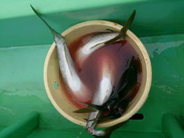 ロッド・安物のショートロッド195 リール・シマノ フォースマスター2000 道糸・サンライン ディープワン4号 ハリス・サンライン ベーシック船ハリス8号 ハリ・金龍 ワラサスペシャルZ 12号&マル秘テスト針 その他・天秤50cm ビシL−80号 ウキ・今回は付けていません・・・ごめんなさい。