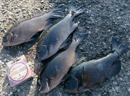 当初の予定では、大会前日18日の朝から「サンラインテスター&サンライン社員合同の釣行会」を行い、その夜に「サンラインテスター懇親会」を開催。そして、翌日に行われる『サンラインカップ磯2016南伊豆大会』のお手伝いをして帰宅・・・という予定でしたが、結果から先に言うと、18日の釣行会と懇親会は行えましたが、翌日の大会は悪天候が予想されるため中止となりスタッフ釣行会と懇親会だけを行って帰ることになりました。 今回は、その大会前日18日の釣行レポートです。 早々に挨拶を済ませ、荷物をまとめて渡船の準備です。 一部のメンバーは雑誌社の取材があったので先に磯へ渡した後に、私と古川テスター、そしてサンライン社員の計5名で中木の沖磯群の中でも沖に位置する「白根」へ上がりました。 私は、白根に降りたのは始めてだったため古川テスターにある程度のポイント情報を聞いた後、古川テスターと社員の方々が釣り座に入ってから北東風を背にできる白根の沖向き「先端」に釣り座を構えて開始しました。 大型の尾長メジナも食ってくるという情報もあったので、磯竿1.5号に道糸はサンライン「ゴルディッシュ2号」、ハリスは同じくサンライン「松田SP競技ブラックストリーム1.75号」を使用。そして、ウキは潮の中でも安定した姿勢で流れ、キッチリ浮いてメジナのアタリを伝えてくれる、ウキ工房「フィールドプラスリミテッドS−0(レッド)」をセット。ハリは尾長メジナが食ってきても飲まれることが少ないハリ先がネムリ形状になっている金龍「勝負チヌ渚」3号を結んだ。 すると、コマセを入れ続けている足元に40〜60cm程はある大型イスズミやアイゴに混じり良型のメジナも目視できたので『磯際狙い』に変更。 それに伴いウキもハリも交換。ウキは、小粒で波の抵抗を受けにくく磯際でも安定していてきちんと仕掛けを立たせるために浮力のある「フィールドプラスリミテッドSSS−3B(レッド)」 ハリは、私が磯際の大型メジナ狙いで使っている「凄腕グレ尾長」。このハリは、多少ハリ先が内側を向いていて尾長狙いにも有効。それに加え超先鋭研磨処理で抜群のハリ掛りを実現させたモデルです。その「凄腕グレ7号」をセットし磯際を狙っていきます。 案の定、税金のように?40aを越える大型のイスズミやアイゴが連続で釣れ上がりますが、我慢して釣り続けると・・・。やっと35aの口太メジナをキャッチ! その後も磯際を狙い続けていくと、一瞬、エサ取りが消えてそのまま仕掛けが馴染んでいくと、一気に竿先を引っ手繰る大きなアタリが!磯際に突き刺さる竿を懸命に起こしラインが根に擦らないように前に出しやりとりを行いますがラインブレイク・・・。 その後、ハリスとハリを巻きなおして再度磯際に投入しますが、潮も変わってしまい釣りにくくなってしまいました。 そして、ハリも「勝負グレ早掛け」の6号へチェンジ。このハリは金龍バリさんより今期の新製品として発売され、小さなアタリを瞬時に捉えてハリ掛りさせる、名の通り「早掛けタイプ」のハリなので口太メジナ狙いに重宝しています。 その「勝負グレ早掛け」をセットした仕掛けで沈み根の際を流していくと、ポツポツとではありますが30a程の口太メジナが釣れ上がり始めました。 磯上がりの時間もあと30分程と近くなってきたので、コマセを足元の磯際に大量に撒いた後に狙いの根際手前へ仕掛けを投入。仕掛けが手前できちんと馴染んだのを確認してからこれから仕掛けが入っていく狙いのポイントにもダイレクトにコマセを入れていくと、ウキがゆっくり沈んだ後に一気に海中へ消しこみました。上手く根をかわしタモに収まったのは38aの口太メジナ。最後の最後で納得のサイズをキャッチして終了となりました。 残念ながら大会は中止となりましたが、他の磯へメンバーも40cmまでのメジナや多くのイサキを釣り上げており、大会が開催できれば多くの魚が釣れ上がったと思うのと同時に中木の魚影の濃さを感じる釣行となりました。 まだ、南伊豆の水温は約21度と高く、潮の中を釣れば尾長メジナやイサキ、また、磯際や沈み根を狙えば口太メジナと、狙い方次第で様々な魚が竿を曲げてくれる楽しいシーズンだと思いますので、是非、ウキ工房のウキを使い分けて釣行してみてはいかがでしょうか? |