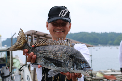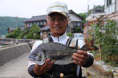 一方、中居の離岸テトラにあがった鈴木(勝)氏・渡部(洋)氏は、30p〜40cm前後のクロダイをそれぞれ5〜6尾釣り上げ、石積みに入った岡田・秋野氏組はワッペン〜35cmまでやはり貧果だと、ボヤきながら船に乗り込んできた。カキ筏組は40pを頭に3〜4尾程度の釣果で、やはり本来の能登の海では無かった。今年は、「藻」が少ないのが原因でクロダイも少ない。そのためエサ盗りの小魚が好き放題にエサを取る。とくにメジナは異常なほど多く、釣果も思うようには得られなかった。