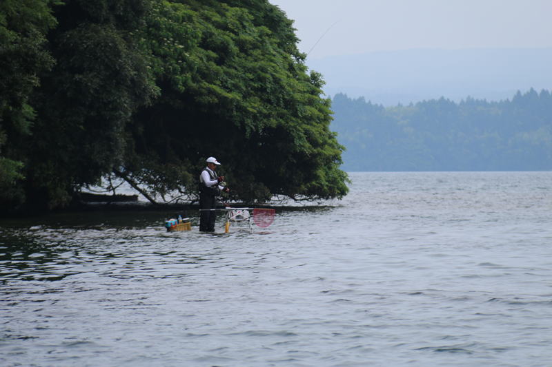 4日午前2時に北陸道・有磯海SAに集合し、岡田進氏・秋野本部長・福島支部・茨城支部・関東支部のメンバーらと能登半島日本海側の大沢漁港へ。現地にて富山支部メンバー2名と合流したが、前日渡船の船長に連絡をとり海の状況を確認して、若干波があるが、明日は落ちるだろうということで来てみたが、意外に「ウネリ」があり渡船はムリとなり急遽、穴水の麦ケ浦に移動(約30分)して出船。野々木鼻に行ってみると、水位は足首より若干上で、高いものの竿を出せる様だ。5月の下旬に来た時は磯と海面がほぼ同じぐらいだったが1ケ月過ぎ水位が20p程度上昇したようだ。野々木鼻先端付近に福島の国井氏が渡り、次に「くるみの木下」に茨城の鈴木(哲)氏と自分が、少し離れたその奥(大岩)に福島の渡部氏と埼玉の鈴木(勝)氏が渡る。