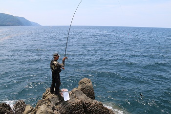 | 満潮と干潮を間違えたぁー、釣りにならない。 「北村さん、梅雨明けないね。暑さはまだ大丈夫かも」 「そうだね、行ってみようか」と言うことでYahoo天気予報を開くと25日(7月)は曇りで最高気温も30℃に届かない。朝のうちは北東で午後から南西の予報で風さえ吹けば我慢できる。て事で午前3時に合流して井田(いた)に向かう。 ここの渡船時間は6時15分と遅く、3時に出ても充分間に合う。 5時30分に港に着くと平日と言うのに釣り人でいっぱいだ。しかし、全員シーラ狙いのルアーマンだ。 地元の方が堤防でゴミ拾い、そしていつもの光景なのだがこの日も駐車場のトイレ掃除のおばちゃんが話かけてきた。 「今日もメジナ狙いかい?・・・メジナは旨いんだよね、私はサカナが大好きで福島の二本松からから引っ越してきたんだ。」と言う。 「じぁーメジナが釣れたらやるから夕方港に来て」 「船長にトイレ掃除のおばちゃんて言えば分かるから置いていって」と言うことで今日はおばちゃんのためにもがんばらねば・・・。 この日の釣り客は我々2人だけで、本来なら今日から船体整備でドッグ入りする予定を我々のために一日延ばしてくれたとのこと。申し訳ない。 北村さんの話では今日の干潮は8時20分ころだと言うことだ。確実ではないがこの付近の釣り場は干潮から満潮にかけての上げ潮は南に流れる「下り潮」で満潮から干潮にかけての下げ潮は沼津方面に流れる上り潮が多い。そして大きな湾口のため、離島なみの速い潮が流れる。 「もうすぐ干潮だから上げの下り潮に期待して二ノ島だね、二ノ島は下り潮しかできないけど」と言うことで船長に告げると・・・ 「えっ、一の島か三の島がいいんじゃーないですか?」と言う。この船長の言葉を信じれば良かった。逆だったとは!・・・ 7時ころ釣りを開始するが潮はまったく動いていない。いつもなら真っ黒になるほどのエサ取りも皆無?・・・ 「もしかして!」しかし何時になっても、その「もしかして」がない。1時間ほどして30cm前後のメジナは食い始めたが潮は動かない。そんな状況だが 「あっ、食った。デカそうだよ」と竿を大きく曲げた北村さんが先端に移動してきた。 しかし、このサカナは沖に出て行く。なんか変だ。しばらくして足元に良型のクロダイが浮いた。これを機に磯の周りはいつものネンブツダイやスズメダイ、キタマクラなどで真っ黒!・・・しかしこれは想定内でやっと井田らしくなってきた。あとは下り潮が入れば良型のメジナになる。だがようやく動き出した潮は上り潮でやがて激流となった。 「おかしいね、下り潮にならないね。それより潮は上げてくるはずなのに全然上げてこない。むしろ下がってるよ。」 「ほんとだ、下がってるね、満潮と干潮間違ったのかなぁー」と、ここでようやく逆だったことに気が付く。干潮と思っていた8時20分は満潮だったのだ。小潮と言うこともあり干満差が少なかったため気づかなかったのだ。 仕方がないので1.5mほどのでっぱりの僅かなヨレを集中して攻めると30cm〜33cm程度のメジナは入れ食いになるがこれに混ざって40cmアップのアイゴも同時に入れ食いとなり、その数は優に20匹は超えた。サイズ的にその都度タモ入れが必要で両腕がパンパンになる。 そしてこの激流は午後の干潮時間を過ぎても一向に収まらず納竿となり、ちょっと小さ目だがおばちゃん用のメジナとクロダイを船長に預け帰路についた。 民宿も経営する渡船の「いど丸」は海水浴シーズンの渡船は休みで9月から再開とのことで、再開したら今度は刺身サイズのメジナをおばちゃんにプレゼントするため、また井田通いが始まるだろう。 餌 沼津市 トージン釣具店 電話0559−32−8848 渡船 いど丸 電話090−5869−2738 |