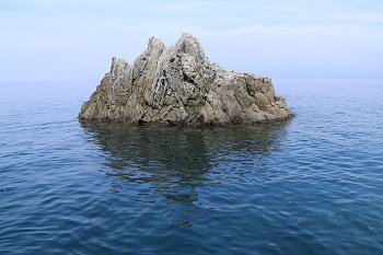 | 井田の七ッ島の中で一番沖にある「一の島」全景。この日船長の お勧め場所だったのだが「足場が・・・」 |