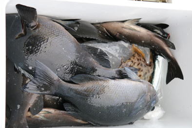 渡部氏も上がり間際に39.3pを釣り上げていた。離れに渡った国井氏と鈴木氏は釣果には恵まれなかったようであったが、我々今回40pオーバーは出なかったものの、強風の中での釣果としてはまあまかな・・・?