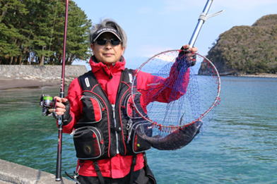「チヌ・グレEX」G3をセットし、タナ2ヒロ半でスタート。2投目で見た目40pありそうなメジナをゲット。とりあえずキープ。その後も40p前後を数尾ゲットでき見た目35〜38p以下は数釣るも全てリリース。