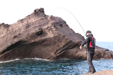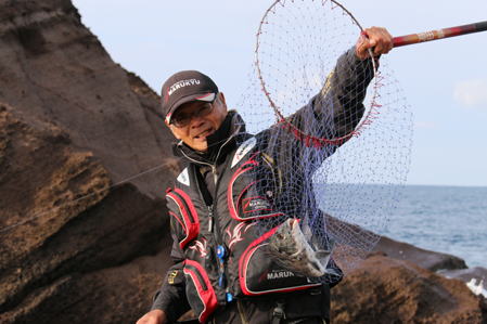 | 薄暗い中、”なまはげ”に迎えられて加茂漁港の渡船乗り場に到着する。いつもなら満車状態の広いパーキングに車は3台、そのうちの1台は今回お世話になる「大竹丸」の船長の軽トラだ。 「どう?あまり良くないようだけど」 「サカナはいっぱいいるよ」 「エサ取りだろう、マダイは?」 「知らねぇー、客がこねぇーから。クロダイも釣れねぇーのに釣れる訳ねぇべぇ、それより早く行くべぇー、いいとこ空けといたから」 船頭の言う「いいとこ」とは釣れる釣り場ではなく、私の対しては足場のいいところを指す。と言う訳で超の付く足場だけは一級磯の「オンベ」に北村さんと二人で渡り、ガイドで同行した地元2名は港方面に戻り磯の名前は忘れたが、小さな三角磯で足場の超悪い磯に渡る。 この日は南寄りの風が6〜7mのため、まずは北向きに釣り座を構え、北村さんは中央部、私は地方よりの奥まったところで開始するが、1投目からイシダイの稚魚サンバソウの猛攻で練エサも入らない。30分ほどでこのポイントを諦め、沖向きにある「帆立?、帆かけ島?」との水道に移動する。 以前の記憶では水深は10mほどだったような気がする。(実際は15mほどあるらしい) 7mほどにウキどめを付けて開始するがオキアミはもちろん、練エサも2ヒロほどで盗られてしまう。 エサの落ち込みでときどきサンバソウやチャリコが針がかりする程度で潮は流れず、時だけは流れる。 マダイはおろかクロダイの気配もない状態が一変したのは開始から2時間ほどで、ゆっくりではあるが下り潮(北向き)が動き始めた直後、竿1本半ほどで狙っていた竿先が海面に突き刺さる。 高水温のせいかパワフルな引きに大型を思わせたがタモに収まったのは41cm!・・・ エサはマルキューの「活きさなぎミンチ・激荒」から拾い出したコーン。 この一尾で北村さんも右隣に移動。潮が速くなり、ウキを3Bにチェンジして竿2本の深ダナまで探ると再びヒットするが30cmちょっとで型は小さくなる。 4ピロほどまでウキどめを上げると良型がヒットするが足元でハリ外れ!・・・45cmほどあったのに!・・・ 足元からのハライ出しでウキが先行し、エサが手前だったためアワせてもウキが動くだけでハリが刺さらなかったのが原因と思われる。 北村さんのポイントは潮下でアタリは多いようで、頻繁にアワせているが25〜28cm程度のメジナばかりだ。 「北村さん、仕掛け軽いんじゃーない、ウキは?」 「Bだよ、アタリはあるんだけどハリに乗らないんだよね」と言う。 水道でかなり速い潮のため、仕掛けが浮いて、メジナばかりなのだろう。また、私のハリ外れと同じでウキが先行しているため、アタリはあってもハリがかりしないのだ。このアドバイスで仕掛けを重くしすとすぐにヒット!・・・ 「なんだろう」 「あっ、クロダイだ。3Bにしたら食ったよ」と30cmほどだがうれしそうな笑顔。 この人ほど分かりやすいひとはいない。釣れないときは男鹿の玄関口で見た「なまはげ」のような怖い顔になり無口になるが、釣れるとやさしいオジさんの顔になる。そしてしばらくしてまた、北村さんの笑顔を見ることができ、終了。 高水温で不調だった男鹿もそろそろ水温は下がり、クロダイそしてマダイの釣果が聞かれる季節になって賑わいを見せているだろう。 TOP |