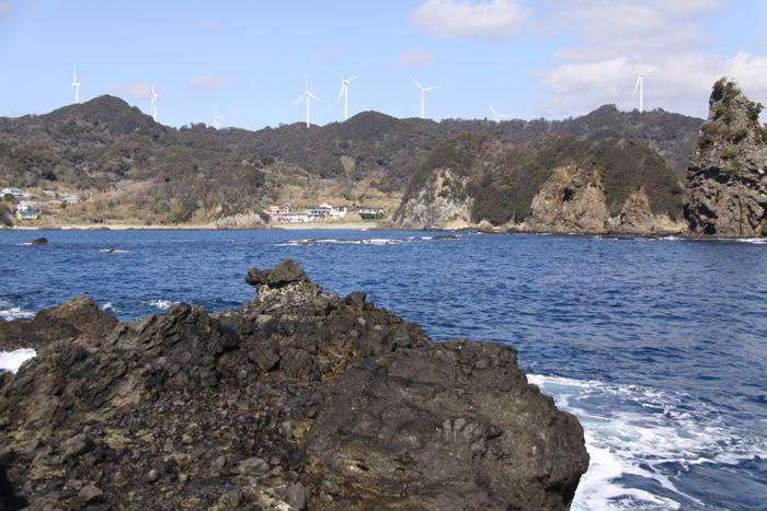 | 後で潮が下がってきてよく見ると大きな「隠れ根」があり、その向こう側で掛けたようであった。一方達也君は「カワハギ」が食べたいとのことで、短竿に市販の「カワハギ」仕掛けをセットしオキアミを付餌で狙っていると見事に25p前後の「カワハギ」を立て続けに3尾ゲット(当初の目標達成・・・・?)。その後メジナ狙いに替えたがなかなか厳しい。山の上に数本立っている風力発電の「風車」が北東からに西に向きを変えてきている。間もなく西風が吹き始めると思い、重たい荷物を持って2往復(普段の運動不足がたたり、年寄りには堪える。年は取りたくないが・・・・・)、 |