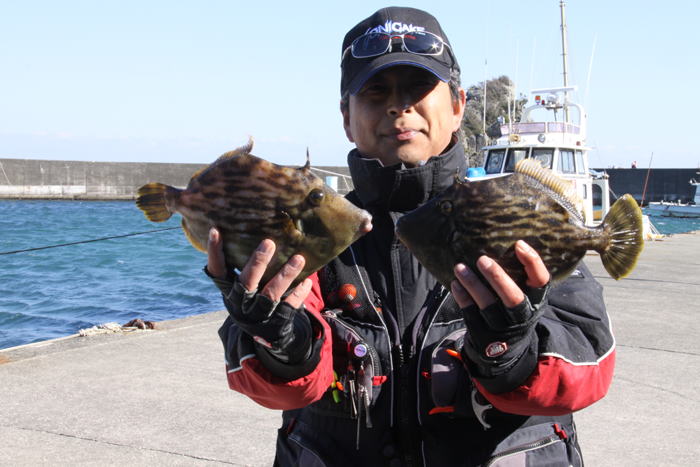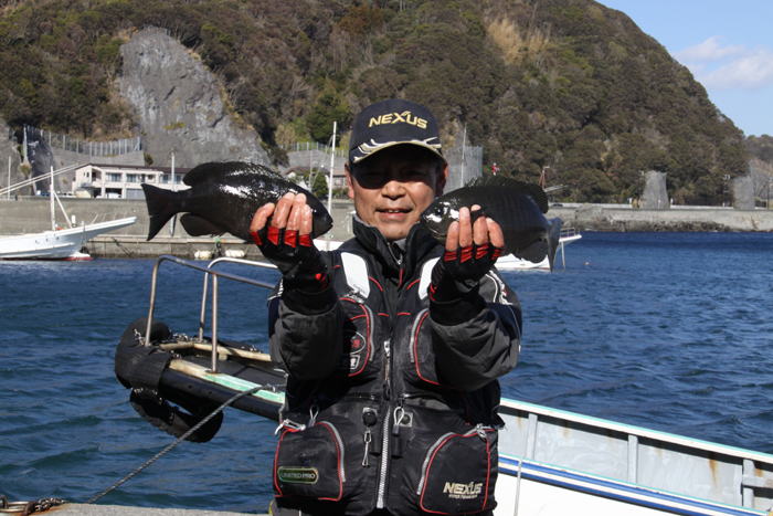 ここ大瀬は、前回「関東支部の新年会釣行」で福島支部の渡部支部長が「与平」で47pのメジナを釣った場所。根が複雑に入れ組んでおりメジナの魚影が濃い場所で、又「牛が瀬」先端ではマダイの釣果もある場所で、海水温が安定すれば大型の期待が持てるのでは・・・。 渡船 大倉丸 TEL 0558−65−0167 |