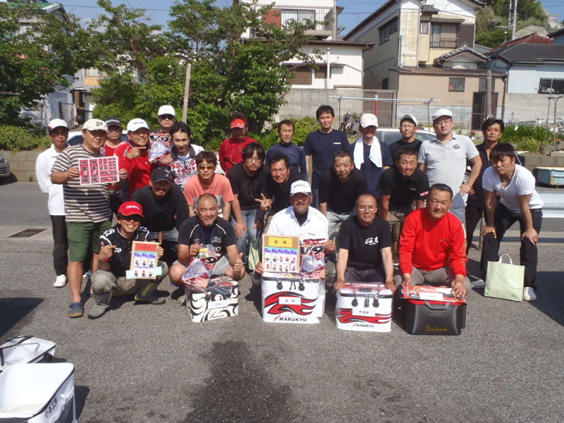 5月10日(日)に千葉勝山にある浮島一帯にて千葉支部主催による毎年恒例の勝山大会を開催致しました。以前の内房ならば3月後半から4月後半に黒鯛のノッ込み時期でしたので毎年4月初旬に開催していましたがここ2・3年、黒鯛のノッ込みがまとまっていなく5月に大型が出るとの情報もあったのでゴールデンウィーク明けの開催としました。今回、岡田代表は残念ながら参加出来ませんでしたが、福島支部、関東支部、茨城支部、千葉支部の精鋭26名での大会でした。大会のルールは23cm以上の黒鯛・メジナ3匹の総重量、入賞者以外の長寸での大物賞、より23cmに近い人の小物賞を設け朝5時30分から午後1時迄、各磯で釣りを開始。実は5月のゴールデンウィーク迄は毎年黒鯛は釣れていたのですが、さすがに10日になると釣果は・・・? 何と磯から帰って来る会員のキーパーバッカンが皆重い! 検量してみればトータル70匹以上の黒鯛やメジナが! 勝山大会でここまで釣れた事が無く、千葉支部会員の口からは、「昼間も釣れるんだね〜」と(笑)とても大盛況な大会となりました。 最後に今回開催にあたり協賛下さった方々、本当に有難うございました。 大会結果は以下の通りです。 優勝 茨城支部 伊藤 武 様 4.41kg 準優勝 千葉支部 黒田 隆 様 3.71kg 三位 千葉支部 小野塚桂介 様 3.17kg 大物賞 茨城支部 中村 栄 様 46.6cm 小物賞 千葉支部 関 泰弘 様 23.4cm 入賞された方々おめでとうございました!!! 千葉支部長 小山 好明 |