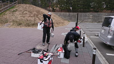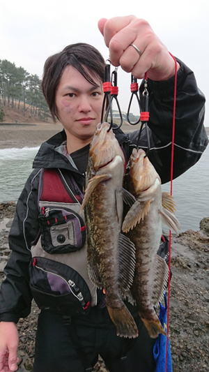 | こないだの釣行からまたまた茨城県大洗磯ナガメに釣行してきました。 今回は賑やかなメンバーでの釣行です。 金龍鉤スペシャルスタッフでもあり、ウキ工房フィールドテスター 伊藤武さんこないだのバラシを1週間落ち込み続けていたウキ工房茨城支部 石川くん。石川先輩のバラシを聞きつけやる気満々のウキ工房茨城支部 田中くんと私を入れ、計4名での釣行になります。 釣行当日の天気予報は午前中は曇で午後からは雨になってしまう予報が出ていました。 予報は的中し、11:00頃ぐらいから雨は降ってきましたが注意しながら釣行を続行いたしました。 07:00ぐらいから釣行していますが特に釣果はなくエサ取りもあまりいない状況でしたが、潮が満潮に近づく中、ファーストヒットに持ち込んだのはルーキーの田中くんです。 足下の沈み根でかけやりとりをしますがなかなか竿が起きず辛い体勢のままどうにか耐えます。 かなり良型のクロダイの引きに私たちもやりとりを見ていてかなりハラハラでした。タモを入れに伊藤さんが行ってくれ、タモ入れ体勢に入りあともう少しのところで悲劇が!!! 鉤上20cmあたりでラインブレイクしてしまい惜しくも良型クロダイをばらしてしまいました。 タモを入れてくれようとした伊藤さんが見た感じ魚体はかなり大きくざっと50cmを越す年なしサイズだったと言う! 田中くんがヒットに持ち込んだポイントはほんとに沈み根が点在していて厳しいポイントです。 ナイスファイトを見せてもらい私と石川くんは気合が入ります。 その後、沈黙が続き同ポイントで田中くんが良型アイナメをヒットさせなんなくランディング成功、40cm前後のいいアイナメです。 私のポイントは特に変化もなく淡々と時間が過ぎていくだけなので変化を起こしたくポイントを休ませ、また釣りを開始した1投目で怪しいウキへの反応に誘いを入れると魚の気配がありタイミングを見計らいアワセを入れるとフッキング成功!!! 間違いなく元気なクロダイの引きです。 慎重に沈み根の位置を確認してクロダイとのやりとりをし無事にランディング完了です。 乗っ込み初期の綺麗なクロダイです。 その後、伊藤さんからのアドバイスのもと田中くんがまたまた美味しいアイナメの40cmをゲットしています。 私も集中してあの手この手と工夫をしていきますが潮が下がり周りの状況が少しずつ変化していくのをヒントに仕掛けにアレンジを加え、「金龍鉤 勝負ちぬ」〜「金龍鉤 チヌ(メジナ)」へと鉤を変え、クリアー凸のサイズもワンランク上げ大きいウキにし、潮の受け具合を変えて変化させる狙いです。 状況次第ですが、今回はよりナチュラルに仕掛けを馴染ませたく「金龍鉤 勝負ちぬ」より線径が細く、自重が軽い「金龍鉤 チヌ(メジナ)」へ変えてから1投目にまたまた怪しいウキへの反応をキャッチ! クリアー凸が押さえ込まれるアタリを表現してくれていたので、根がかりも懸念されましたが魚の気配を感じ丁寧にアワセ入れるとびっくりしたのか一直線で沈み根へと走っていきます。 レバーブレーキにて魚の引きをいなし上がってきたのはまたまた綺麗なクロダイです。 もう、クロダイが「まいった!!!」してくれていたので静かにタモの中に入ってくれました(笑) ちゃんとヒレを上げて、海面に現れたのでそう見えました(笑) 雨は最後まで降り続け、びしょびしょになりながらも石川くんは粘りましたがアタリはなく今回も修行の釣行になってしまいました。 今回の釣果で感じたことは、何かを変化させるとそれに対する魚からのシグナルが出ていたので、茨城県大洗磯には好奇心旺盛な魚が多く入ってきているのではないかな〜と感じました。 やはり鉤のローテーションやウキのフォルム・浮力などの調整は必須で色々試して行くのも面白いですね! 茨城県もクロダイシーズンに入ってきており、面白い釣り場はたくさんあるのでまた釣りに出かけたいと思います。 ※金龍鉤 official website 「http://www.kinryu-hline.co.jp」 ※黒澤一天の…クロダイ修業!?一天勝負!! 「http://blog.goo.ne.jp/03220429」 上記のwebでも、釣行記を紹介させていただいています。 よろしくお願いいたします。 BACK |