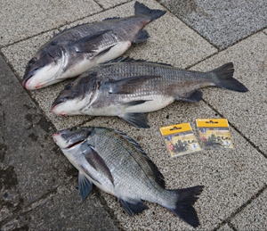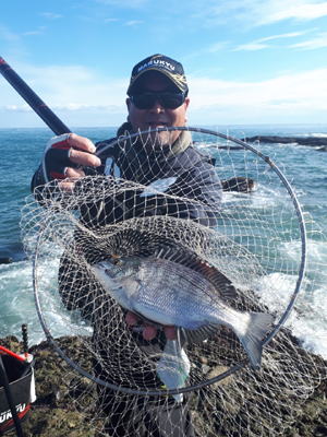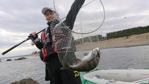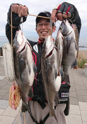 【詳細】 ●天候 晴れ曇り ●水温 14度 ●潮 大潮 ●日時 2020.11.29 ●釣果 クロダイ45p2枚・34p・カイズ・アイナメ ●釣り場 茨城県大洗磯キタワレ ●使用ウキ チヌグレEX2(LL)3B 今年の秋は意外と暖かく、このままあまり寒くならず、暖冬になってくれるといいな!っと思っていた矢先にだんだん気温が落ち、冬の寒さになってきた11月29日にウキ工房アドバイザーである「伊藤武さん」とウキ工房茨城支部のアグレッシブアングラー「石川裕也くん」で秋終盤の大洗磯に挑戦してきました。 この日は天気図的にもしかしたらウネリが残り、ゴムボートでの渡船ができないのではないかと思う海況でしたが、晴れ男の伊藤さんがいてくれたので天候が持ちこたえ無事に渡船することができました。 今回は大洗磯のキタワレと言う沖磯へ渡船しました。 このポイント選択も伊藤さんによるもので、大洗磯を知り尽くしているからのポイント選択になります! 釣りをスタートする前に伊藤さんがポイントのアドバイスをしてくれて、釣りをスタートさせます。 釣りを開始するとエサ取りの猛攻に悩みながら、いろんなポイントの差し具合を探る釣りをしていました。 同行した、石川くんもポイントが絞り切らず迷いが生じ少し落ち着きがない様子。 その時、伊藤さんのロッドが絞りこまれます! クロダイのヒットです! 釣りあげられたクロダイは34pと若者ですが、さすがの釣果です。 その後も連続ヒットでカイズをヒットさせていました。 まだ釣果が出せていない私と石川くんに伊藤さんが現状の海況を兼ねて、ポイントのアドバイスをしてくれます。 アドバイスをいただきポイントを変えて仕掛けを通してみると、明らかに潮が通っている場所があり、何よりも私の使用している「ウキ工房 チヌグレEX2(LL)」が潮にのり、ウキが潮をつかんでいるのが良くわかりました! 何投もしないうちにツケエサが残ってきて、次の流しで「チヌグレEX2」が消し込みます。 フッキングを入れると明らかに良型のクロダイの引きで、ロッドにのせてやりとりをしていると突然テンションが抜けて、ハリスがブレイク(汗) ハリスのチェックはこまめに行っていましたが、どこかでフグに噛まれていたのかもしれません(泣) 気を取り直し、さっきのヒットゾーンへ再び流し込むとまだクロダイの気配があり、付けエサが残ってきていました。 流す幅を少し多く取り、張り具合を変えながら根と根の間を通し行くと、「ゴン!」とアタリが出てすかさずフッキングを入れます。 またまた良型クロダイの引きをロッドに乗せながら、根を交わしやり取りをしていき、アシストしてくださった伊藤さんのタモに無事にランディング成功! 体高のある凛々しいクロダイ45pでなかなかいい引きをしてくれました! しっかり潮の流れをとらえてくれた「チヌグレEX2」に感謝です。 その後、石川くんとポイントを交換し、私の感覚をレクチャーすると数投で石川くんにもヒットします! そのクロダイも良型の引きでヒット直後、石川くんの「来た!!!!」と言う声が磯に轟き、私はその声にビックリしながら石川くんのアシストに入ります(笑) レバーブレーキをうまく使いながらやり取りをし、上がってきたのはこちらも良型のクロダイです♪ ランディングを済ませ、計測すると私のクロダイと同じぐらい体高がある45p同寸のクロダイでした。 満潮になるにつれて少しずつウネリが高くなり磯の上をさらい始めたので安全を考慮しこの日はこれで納竿といたしました。 伊藤さんのポイント選択が的中し、全員安打で釣りを終えることができ、大洗磯を知り尽くしているからできる玄人の釣果に感無量です! 大洗磯は独特な地形の為、なかなか釣果を出すのが難しい場所ですが、今回使用した「チヌグレEX2」の潮を掴むウキトップのディンプル加工がとてもよく、水中でのウキの姿勢もいいため食い渋っているクロダイにも効果覿面です、また近距離から遠投までこなしてくれるので遠投を好む私には強い武器になるウキでもあります。 「チヌグレEX2」で良型クロダイを求め、大洗磯に再チャレンジしていきたいと思っております。 |
