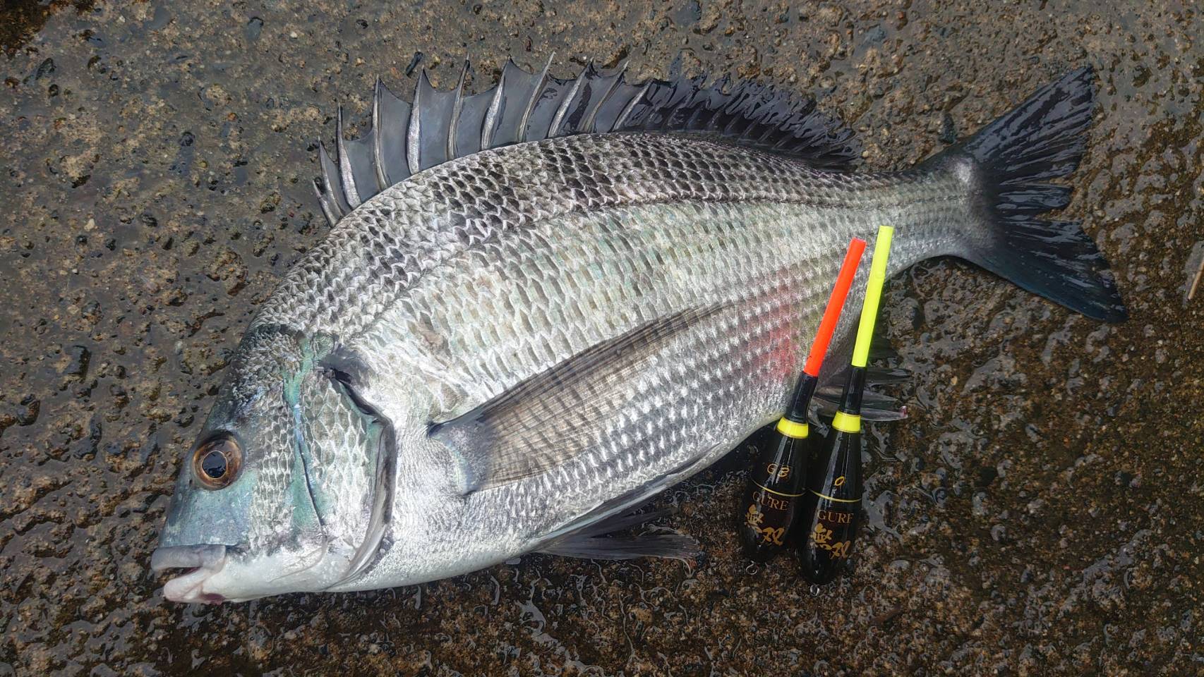 | コロナで自粛していたため、少し前の報告になります。 釣行時の潮は下げ止まりぐらいからのエントリーで、釣り場も川の流れを少し交わせる場所なのでクロダイ狙いにはうってつけの場所になります。 ウキ工房アドバイザーの伊藤武さんと釣り場で待ち合わせをし、小雨が降る中での釣りスタート! 流れはやはり川なのでまるっきりないわけではありませんが、釣りづらいほど早くないのでいい感じです! 釣り場では魚の活性が高いのか、シーバスや鯉がかなり頻繁にボイルをしています。 最初に選んだウキは使いなれた「クリアー凸 3B」をチョイス! 真水の影響で浮力が変化するのを考慮し、浮力の高めなウキを選択しました。 用水路からの流れと川の流れがぶつかるところで開始早々に伊藤さんにヒットです! 手前には沈み根が多く点在しているのでやり取りは慎重に行わなければいけませんが、伊藤さんにかかれば何の心配もなくランディングに成功! いぶし銀のキレイな40cmジャストのクロダイです。 私はその後、ウキ工房から新発売の「グレ無双 3B」に変更します。 「グレ無双」は下膨れの小型立ちウキになり、感度は抜群に良く、なんと行ってもアタリをしっかり目視してフッキングできるのが楽しいウキです。 私も伊藤さんに引き続きでクロダイらしいアタリをキャッチし、地形的に掛け下がりになってるであろう場所でフッキングが決まり、ヒットに持ち込みます! 小気味の良い引きは間違いありません、慎重にやり取りをし、上がってきたのは若者ながら35cm前後のシマシマ模様がキレイなクロダイです! その後、下げ潮から上げに向かう中で活性がMAXになり釣れ盛ます! 25cm〜30cmのカイズは相当な数をヒットさせ、伊藤さんは今回の最大であるクロダイ45cmをゲット! 私も40オーバーを数枚ゲットしたところでお出ましです(笑) とうとう来てしまいます…先手を切ったのはやはり伊藤さんで…川と言えば毎度恒例なあのお魚の登場です(笑) ウキにモゾモゾと出る変なアタリを鋭くフッキングを入れると、伊藤さんのロッドがフッキングと同時に海面に突き刺さります! その強烈な引きをオープンベールとレバーでいなし、安全なところまで走らせ一息置いたところで確信します…モンスターは良型の鯉です! いなしながら体力を奪い、ランディングに成功! 優に80cmオーバーは越えているであろう、ランカーサイズの鯉です。 近くで投げ釣りをしていた釣り人は驚愕の表情でやり取りを見ていました(笑) そのぐらいロッドは満月に曲がり、強烈な引きをいなしていたのです! それから…私にも来ましたよ(笑) クロダイらしいアタリが出たのでフッキングを入れると良型クロダイではないのかと思う叩く引きを見せるのですが何かおかしい…叩かなく なってからは突っ走る引きのみでやり取りをしながら確信します…私にも良型鯉がヒットです(汗) わかってからはロッドをフルに絞り混み走らせ体力を奪い、ランディングに成功させると先程の鯉と同サイズであろう立派な鯉でした! 鯉を釣り上げたところで雨が強くなり、クロダイのアタリも遠退いたをきっかけに納竿と致しました。 納竿までクロダイの数釣りを成立させてくれた「グレ無双」は小型なボディーで飛行姿勢も良く、アタリをダイレクト に取れるのでホントに使いやすく、今回の高釣果を残せたのもこのウキのお陰だと思います。 秋にかけ、河口から川でのクロダイは最盛期を迎えるので短時間でも釣行してみる価値はあると思いますので、対策を万全にしてまた挑戦してみたいと思っております! ■釣果:クロダイ 25cm〜45cm ※2人で40cmオーバーは3枚 ■釣り場:茨城県ひたちなか市 那珂川 栄町水門 ■使用ウキ:クリアー凸、グレ無双 ■使用鉤:勝負ちぬストレート 2号〜3号、勝負ちぬネリエ&コーン 2号〜3号 |
