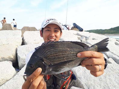 | 最近の天候を一言で表すと...とにかく暑い! 全国各地で最高気温の記録が更新され暑い日が続いていますが、私はクロダイのウキフカセをオールシーズンやっているので真夏でも釣行に出掛けます。 今回の釣行も暑さとエサ取りの多さに下火になりつつある鹿島灘ヘッドランドにウキ工房茨城支部の石川くんと釣行してきました。 釣り場所はアクセスもしやすいくサイズは小さいながらコンスタントに釣果があがっている「濁沢ヘッドランド」です。 仕事の都合もあり暗いうちから釣り場に入り、半夜釣りからの日中日没までのロング釣行! もちろん熱中症対策はバッチリ段取りしての釣行になります。 ウネリは少しありましたがヘッドランドのサイドは使えるので南側の3時方向に釣り座を構えます。 暗いうちは魚の気配がなくエサは残ってきましたが、明るくなるにつれエサ取りは多くなり、かなりの苦戦をしいられます。 暑さも増して厳しくなってきました。 夏のウキフカセはとにかくエサ取りとの戦いになるので細かいガン玉ワークやコマセワークを行い、ストラクチャー周りを丹念に狙っていきます。 ストラクチャー周りで少しだけでしたがエサが残り始めました! 鉤の変更により、ツケエサ自体の自重が変わり、エサ取りはフグがメインだったので鉤を軽くしたことによりツケエサが少しだけスルーされるようになったのだと思います。 その仕掛けでウネリが来るタイミングを見計らいストラクチャー際に入れ込むとウキ工房「アルミエンスイ(G2)」が入り込む潮をつかみ仕掛けをストラクチャー奥へと入れ込んでくれたところで「ゴン!!」っと何かが鉤にヒットしたアタリが穂先に伝わってきました! 穂先を少しずつ引き上げていくと間違いなく魚信が伝わってきたのでもしやと思い優しくストラクチャーから引っ張ってくるとストラクチャーを交わしたあたりで沖に走る猛烈なファイト! ラインを出し強い引きに耐えながらやり取りを行います。 やり取り中もウネリを見ながらいなしていきますがウキ工房「アルミエンスイ」はドングリタイプのウキなのでこうゆうときでも、ウネリの抵抗をもろに受けることなくウネリを切りながらやり取りを行うことができとても使いやすいウキだと私は感じています。 水面に上がってきたのは真っ黒な良型クロダイです! 同行していた石川くんにタモ入れをお願いし、無事に取り込むことができました。 エサ取りのちょっとした変化に気づけたからこその価値ある釣果です。 そこ後もストラクチャー際で良型アイナメをゲットし、最後に石川くんもカイズを追加したあとに納竿と致しました。 暑さもかなりのものでなかなか辛い状況でしたがこのサイズが釣れるのならやる価値はあると思います。 まだまだ夏本番はこれからです。 Back 暑くなる中、熱中症に注意を計りクロダイをウキフカセでまた狙いに行きたいと思います! ●天候(晴れ) 潮(中潮) 水温(20.5℃) 波(1.5m) ●日時 2018.7.25? ●釣り場 濁沢ヘッドランド ●釣り方 ウキフカセ釣り ●釣果 クロダイ30〜46cm2匹 アイナメ30〜44cm2匹 ●使用したウキ アルミエンスイ(L)(イエロー)(0〜5B) ※金龍鉤 official website 「http://www.kinryu-hline.co.jp」 ※黒澤一天の…クロダイ修業!?一天勝負!! 「http://blog.goo.ne.jp/03220429」 上記のwebでも、釣行記を紹介させていただいています。 こちらもよろしくお願いいたします 。 Back |