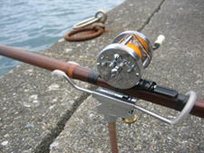 今ではなかなかの貴重品で、調子は6:4の調子です。リールは両軸で逆転の出来るラチェツト付き。俗に言う黒潮リールを使用します。